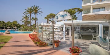 Ideale per pasti informali e ottimo per un cocktail o un caffè mentre ci si rilassa a bordo piscina o nel giardino Offre un menu vasto e vario con piatti tradizionali mediterranei e internazionali.