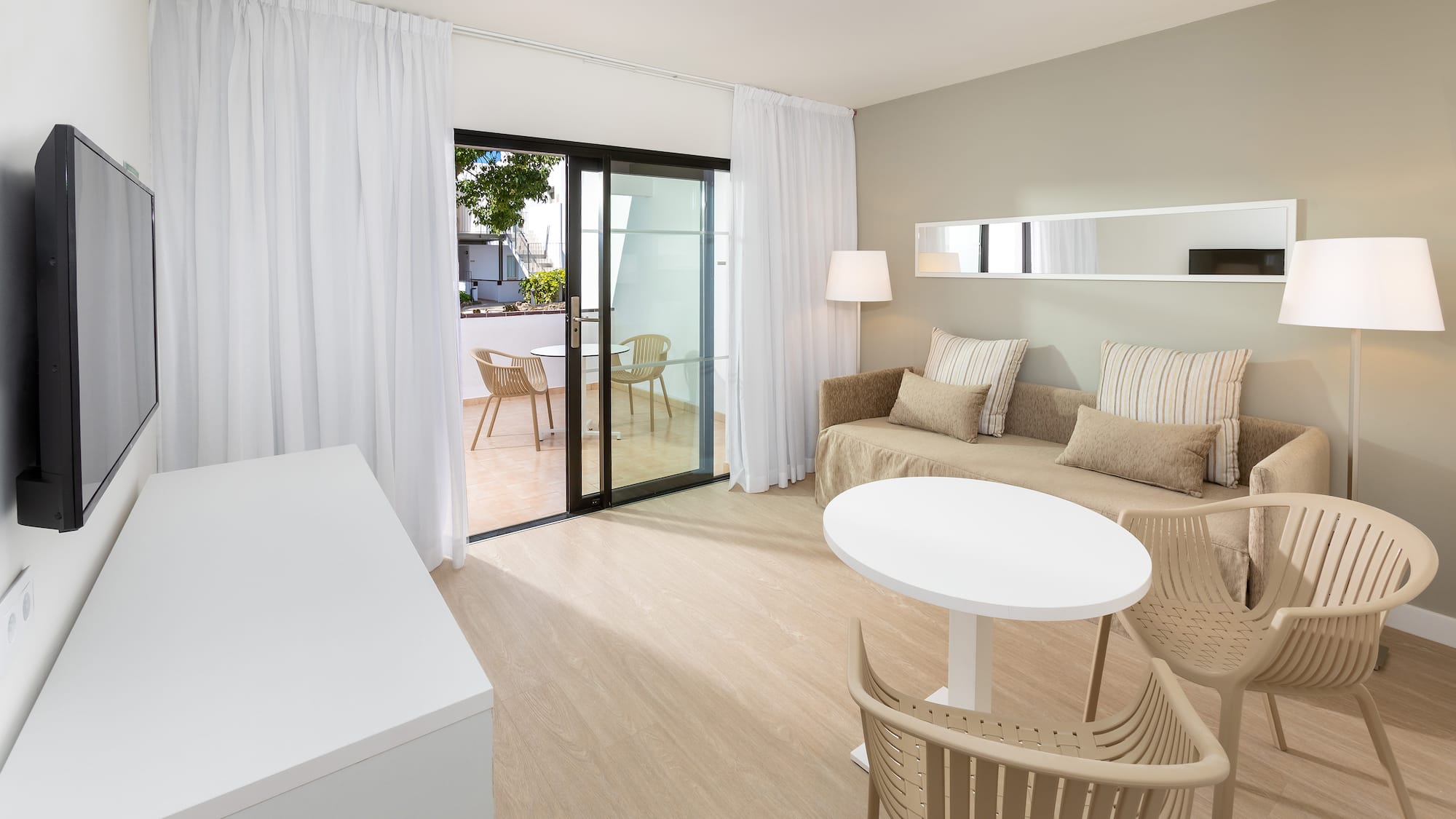 Unforgettable holidays await you in this comfortable room. A separate lounge with a sofa-bed, a bedroom, a bathroom with a bathtub, and direct access to a large furnished balcony. Enjoy your stay in Fuerteventura with the Tribe.