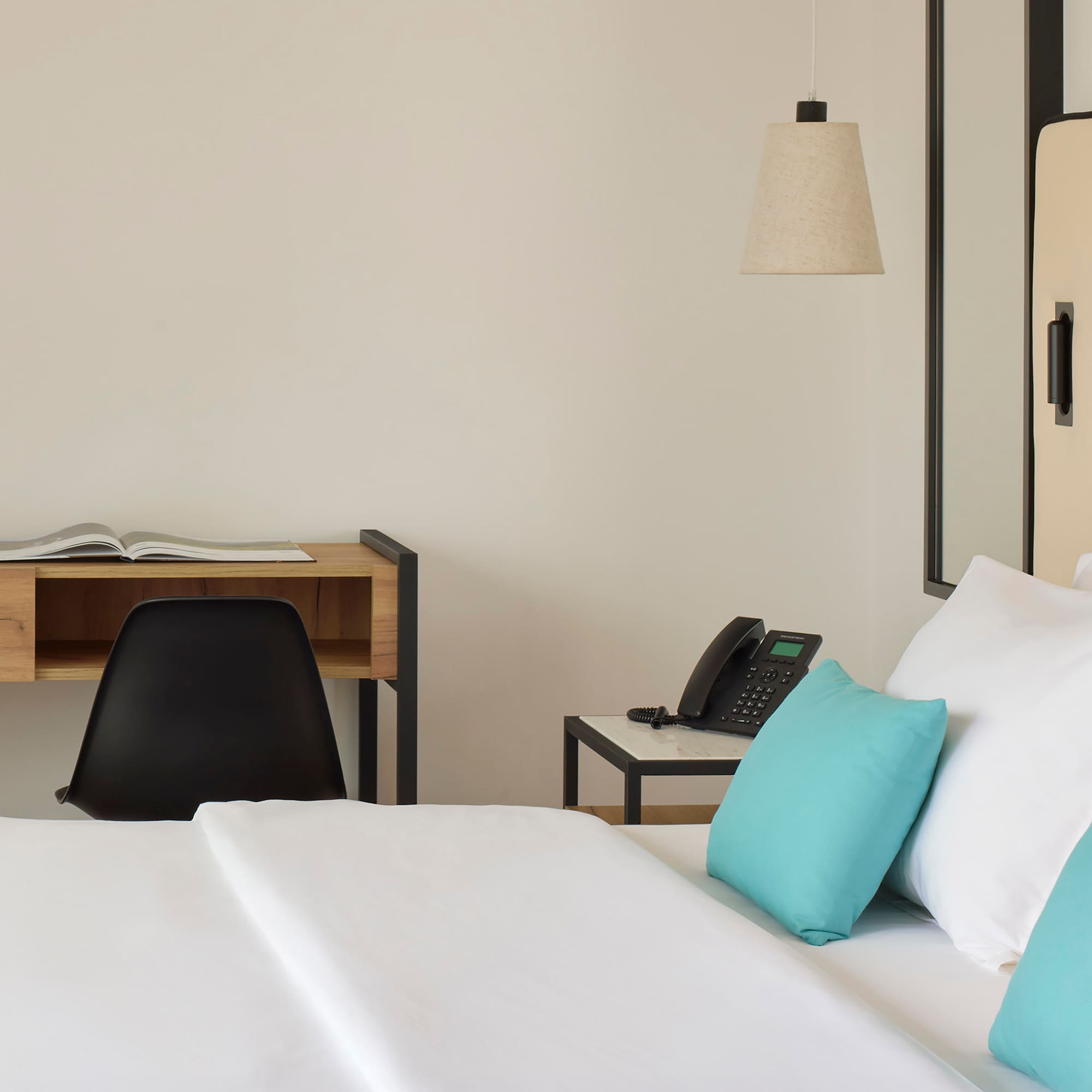 Ontdek onze kamer met twee met elkaar verbonden slaapkamers en een balkon met uitzicht op het zwembad van het hotel. Het biedt moderne diensten en faciliteiten plus een domoticasysteem. Geniet van uw tijd in Durrƫs.