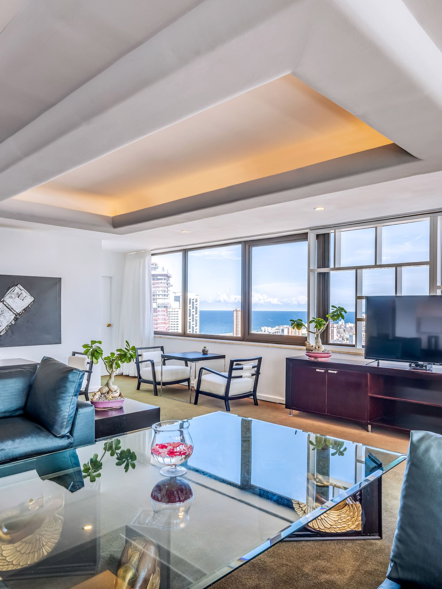 Deze luxueuze suite beschikt over een inkomhal, een salon, twee badkamers en een slaapkamer, allemaal met een ongelooflijk panoramisch uitzicht op de boulevard van Malecón in Havana. U hebt ook toegang tot alle The Level-services, plus een transfer van en naar de luchthaven als u 3 nachten of langer blijft.