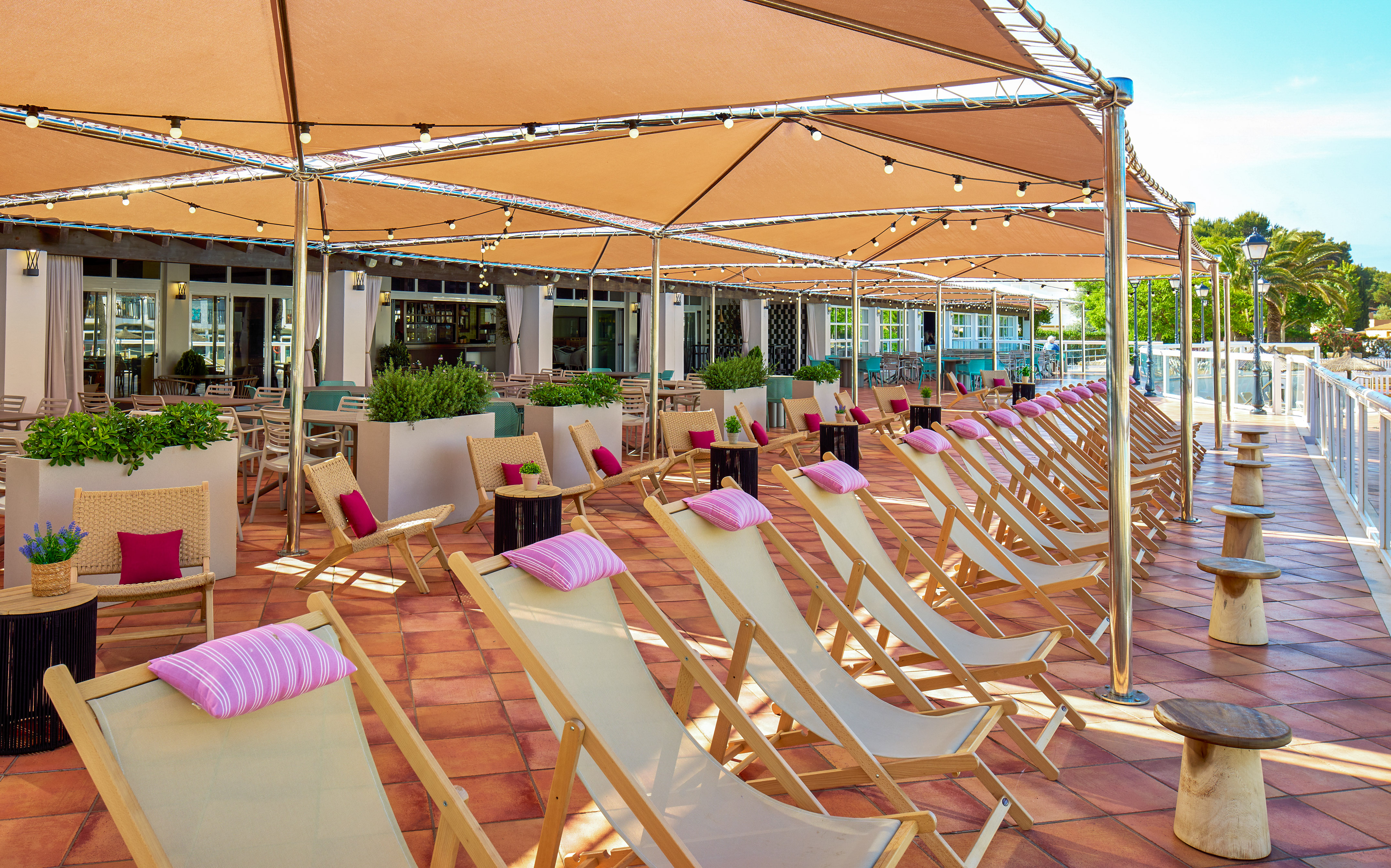 Naast het zwembad is dit terras ideaal om te genieten van heerlijke hapjes en drankjes terwijl u blijft genieten van de Menorcaanse zon. Het snackmenu varieert gedurende de dag om zich aan te passen aan elk moment van de dag en altijd smakelijke gerechten.