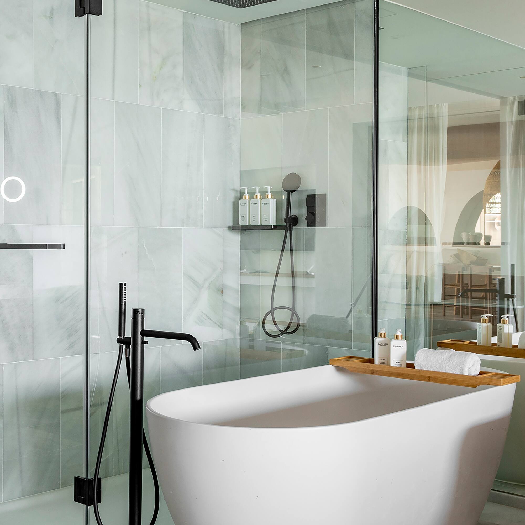 Met een interieur dat nauw verwant is aan de Menorcaanse stijl, is het perfect voor familie-uitstapjes dankzij de ruimtelijkheid en faciliteiten. Deze suite met zeezicht en ligbad op het terras is het resultaat van de verbinding van een Junior Suite en een Supreme-kamer.