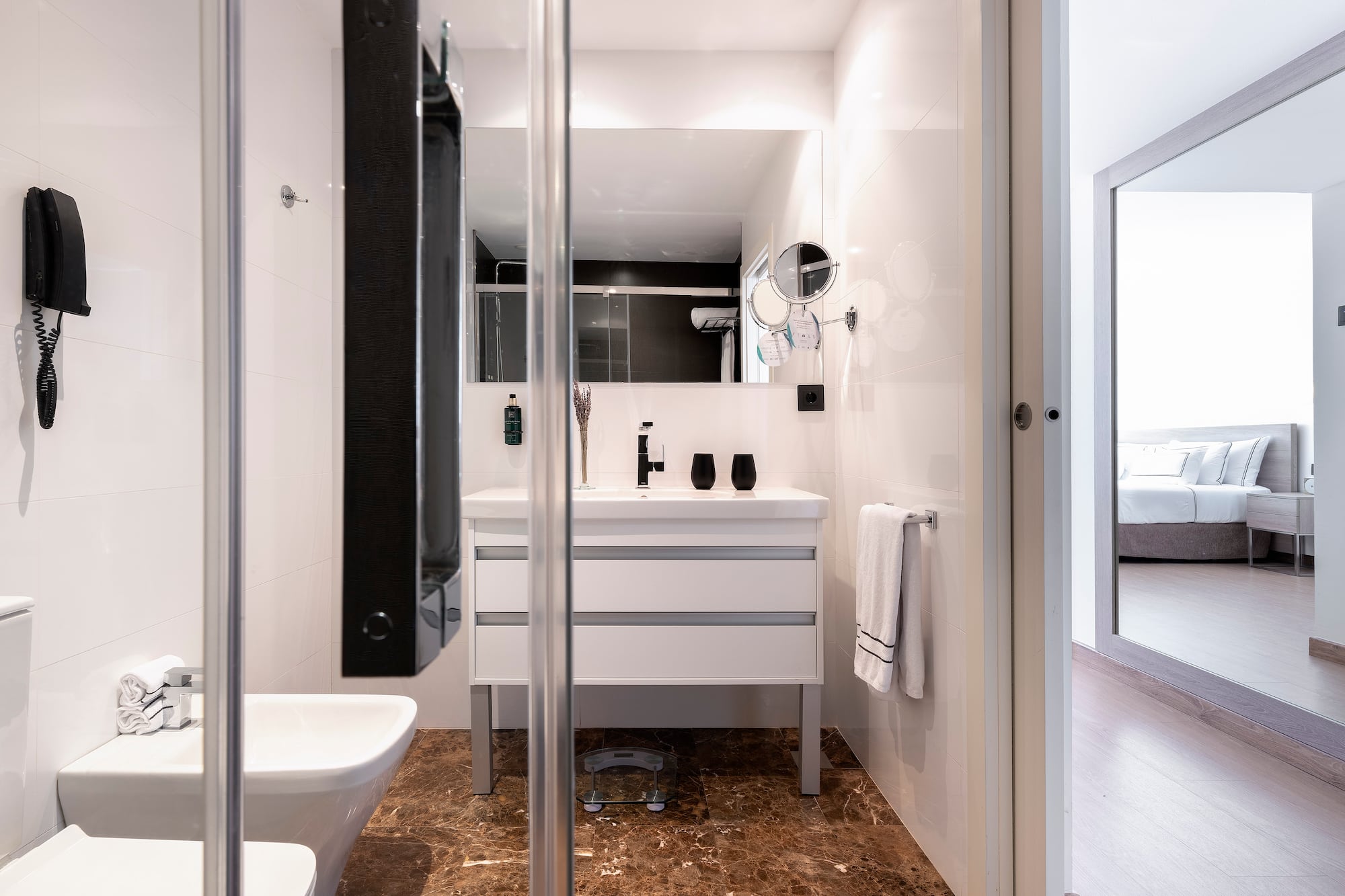 Een kamer vol elegantie en daglicht, met nog meer ruimte en de mogelijkheid om een extra gast te herbergen. Deze ruime kamer biedt een tweepersoonsbed of twee eenpersoonsbedden (afhankelijk van beschikbaarheid) en een slaapbank. Het heeft ook een prachtig uitzicht op de zee (afhankelijk van beschikbaarheid van de kamer) vanaf het prachtige terras.
