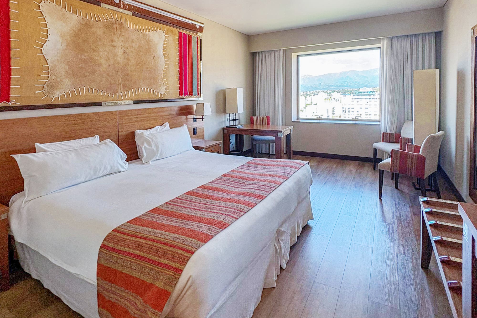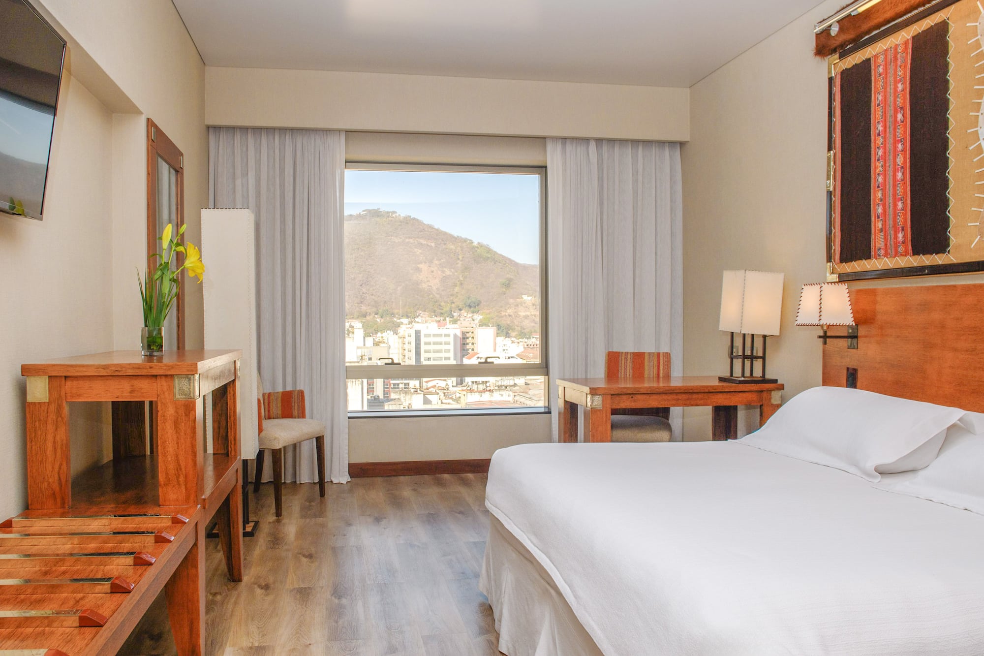 Mergulhe na essência de Salta a partir deste quarto com vista para a cidade e as montanhas. A elegância do mobiliário e a gama completa de amenidades criam um ambiente único para relaxar ou trabalhar.