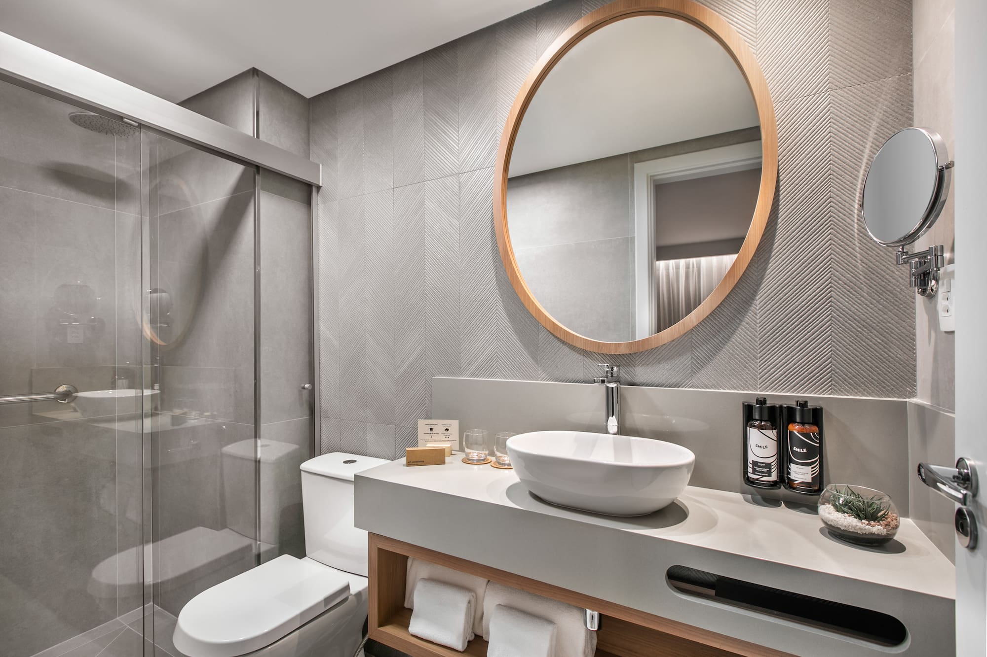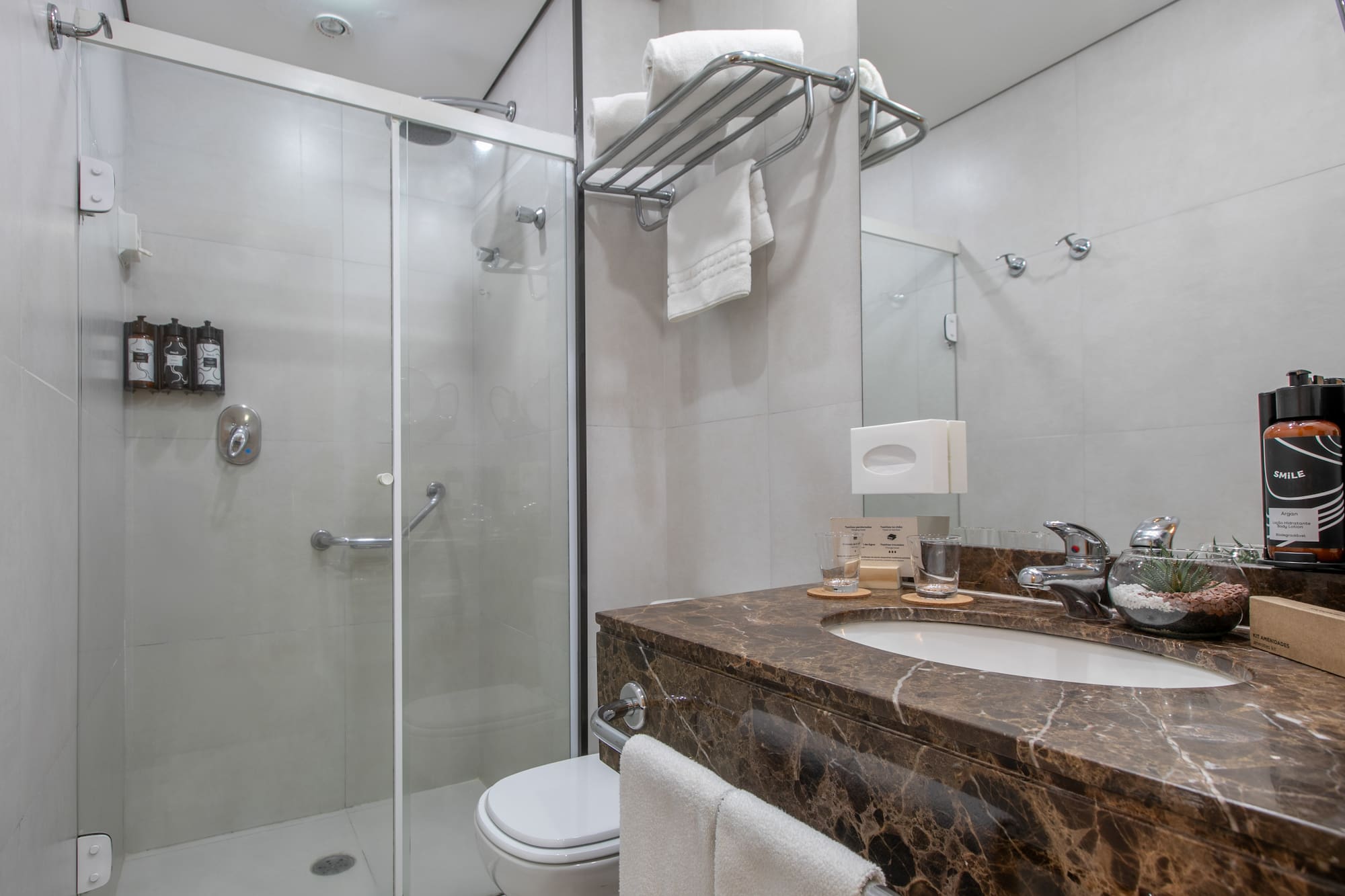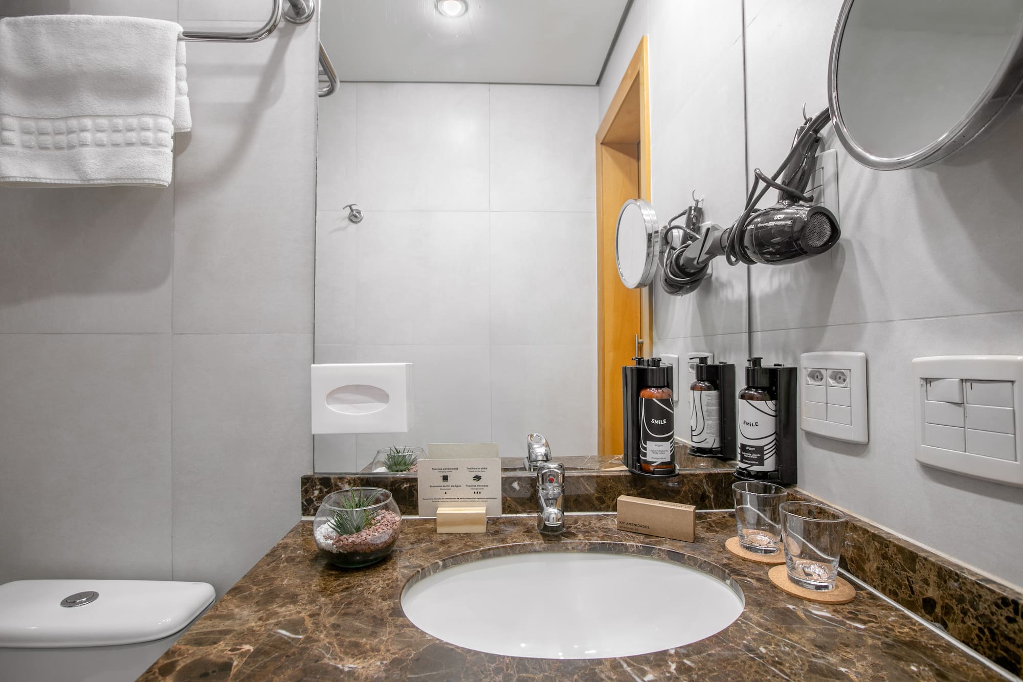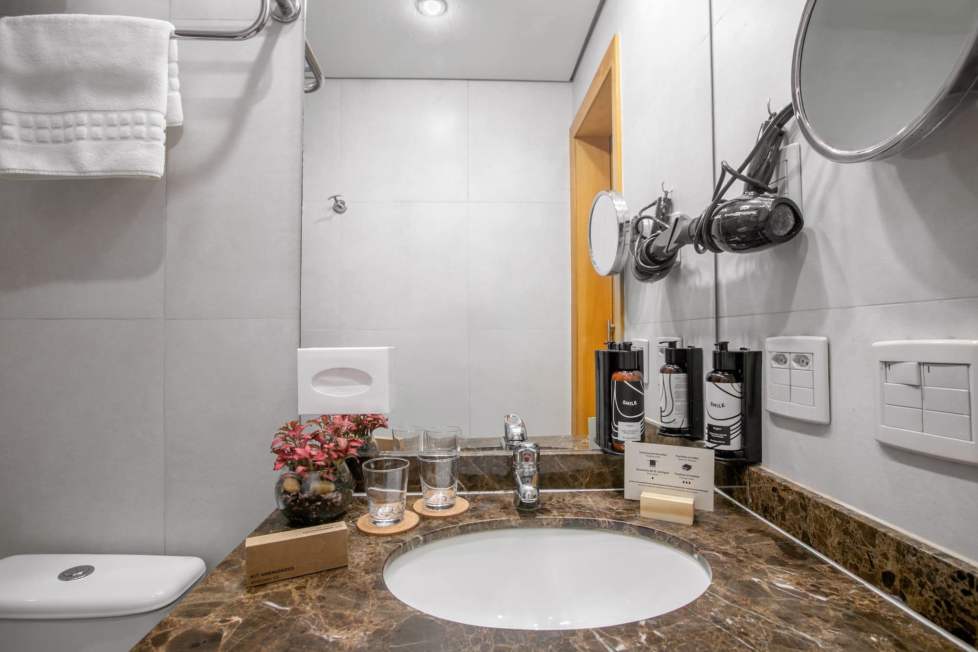 Com vistas deslumbrantes, você terá uma Smart TV, uma cafeteira Nespresso para começar bem o dia, um minibar para os pequenos caprichos e um banheiro tão completo que você não vai querer sair. Tudo o que você precisa para se sentir em casa... mas melhor!