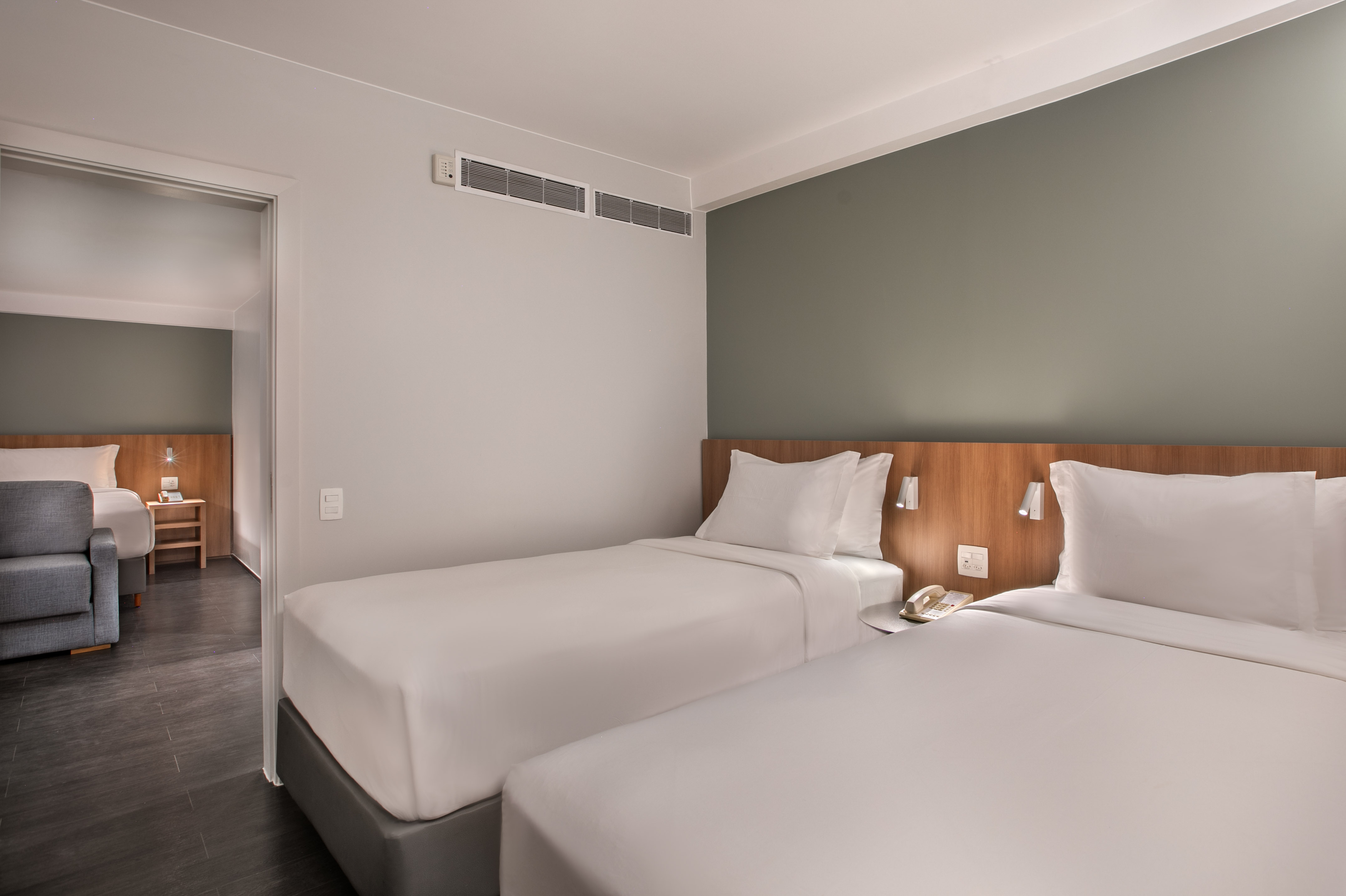 Quando viajar em grupo é sinónimo de espaço, este quarto tem tudo para tornar a partilha num verdadeiro prazer: cama de casal, cama extra, TV, minibar, roupão, chinelos e até ferro de engomar! Para o caso de querer impressionar… sem vincos.