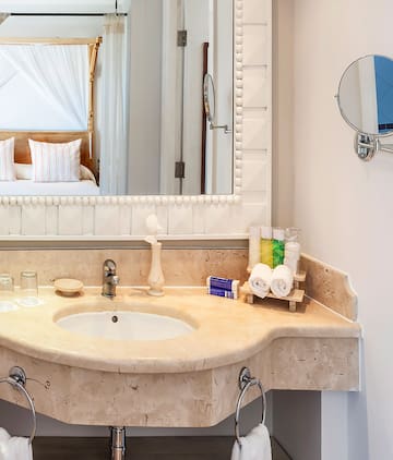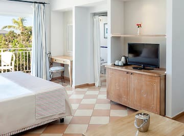 Dispõe de um hall com roupeiro, quarto, casa de banho com banheira/duche e varanda ou terraço. Inclui uma cama king-size e comodidades como televisão por satélite, secador de cabelo, roupão de banho, toalhas de praia, cofre e mini-bar com refrigerantes e cerveja.