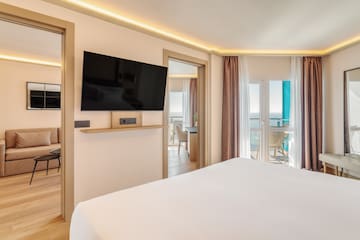 Descubra um quarto sofisticado apenas para adultos e com vistas do mar. Dispõe de um quarto, uma sala separada com sofá-cama e duas casas de banho, uma com chuveiro e a outra com banheira de hidromassagem. Um espaço tranquilo no qual podem desfrutar de uma experiência de completo relaxamento. Desfrute de todos os benefícios do serviço The Level ao ficar alojado neste quarto.
