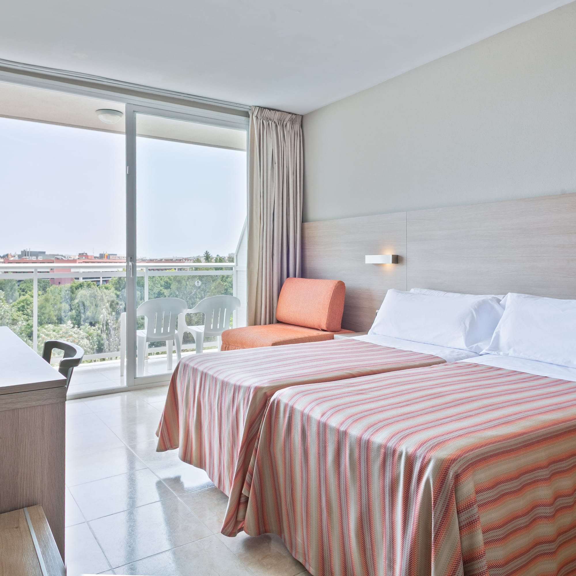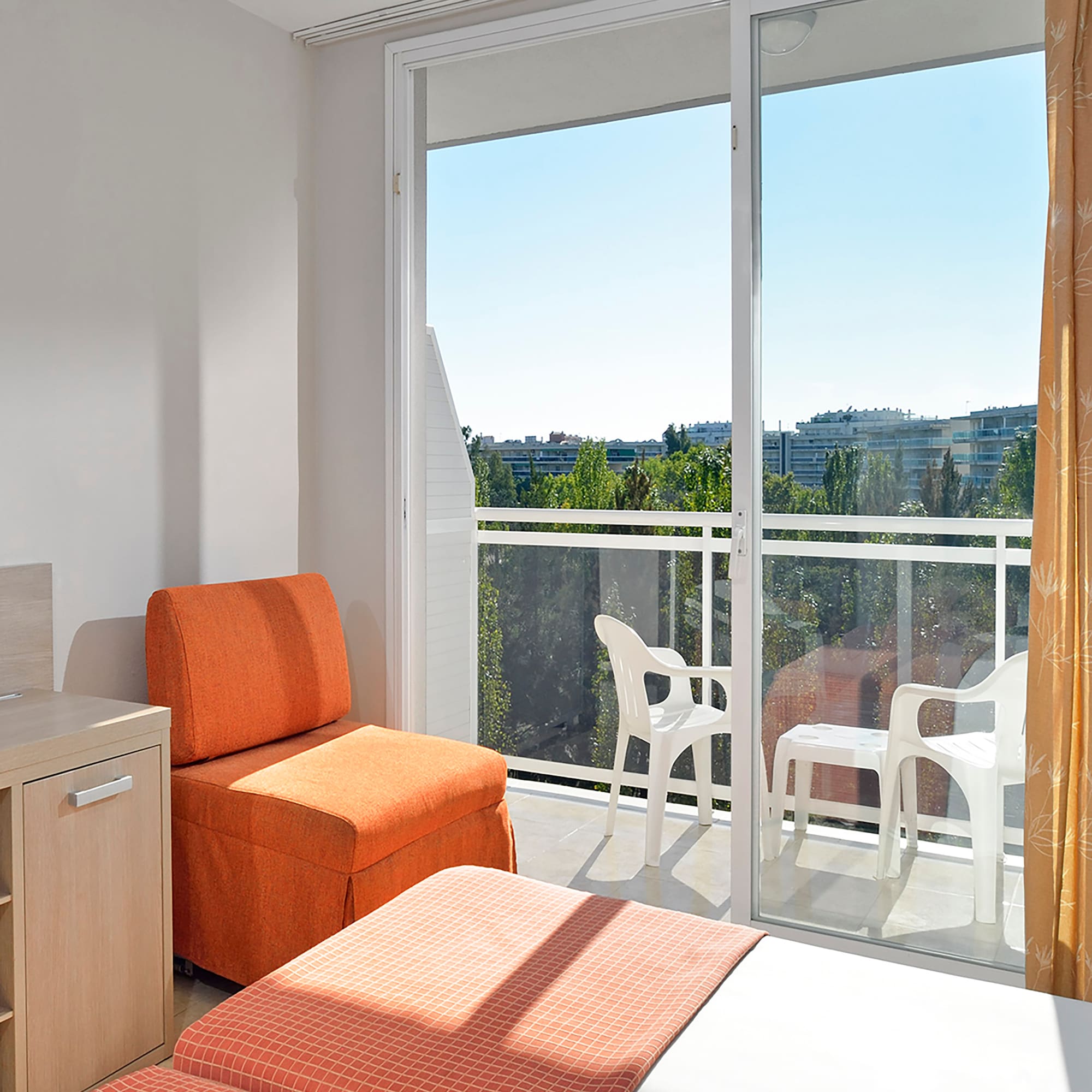 MIME-se com umas férias em família na Costa Dorada para desfrutar sob o Sol. Descubra uma fantástica sala com espaço para todos. Oferece duas camas de solteiro ou uma cama de casal, sofá-cama e terraço mobiliado com vista para as montanhas ou os jardins.