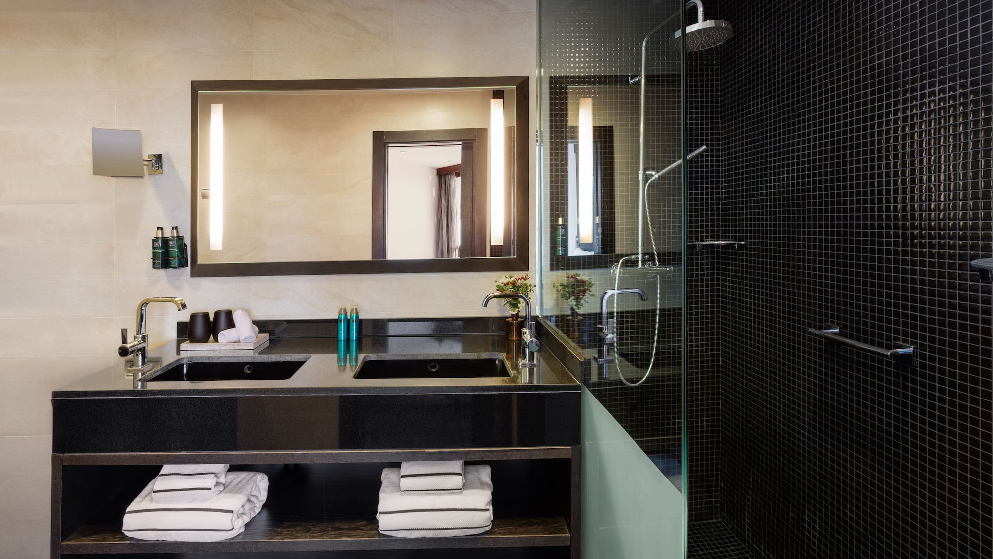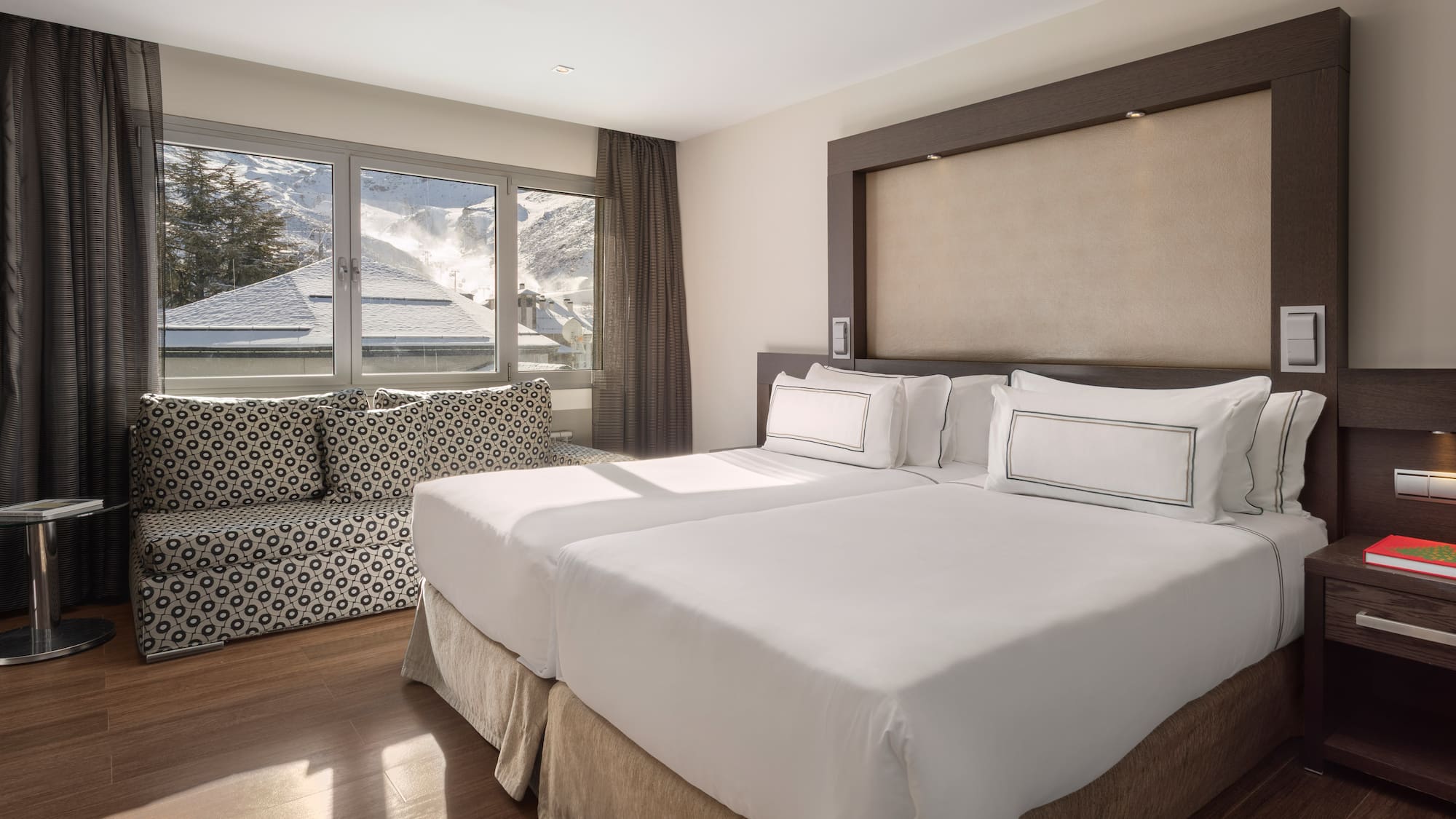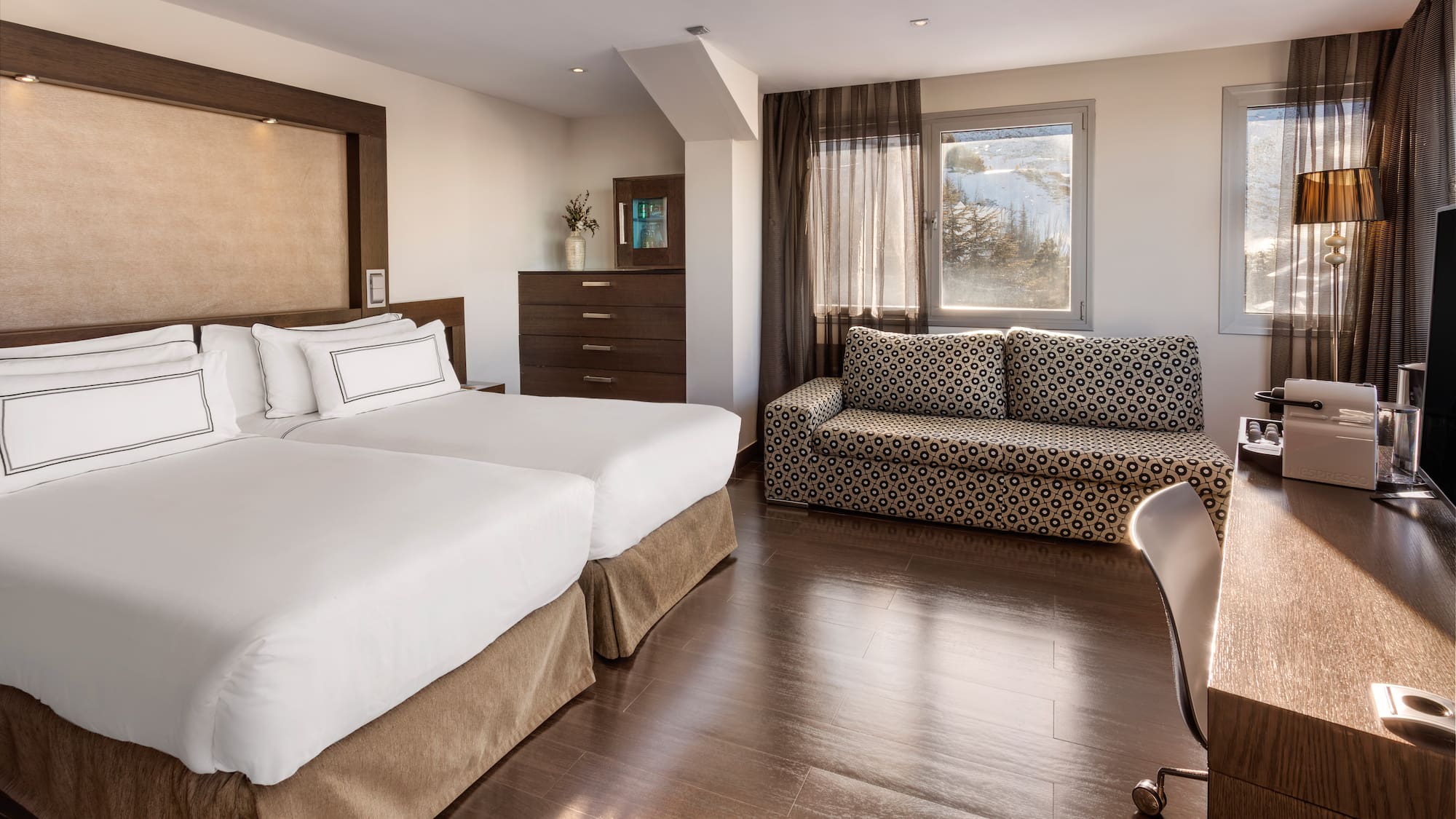 Com um distinto ar rústico de montanha acompanhado de detalhes vanguardistas, cada um dos quartos tem uma zona de vestir, duas camas individuais e um confortável sofá. A casa de banho completa inclui um chuveiro de efeito chuva, amenidades de luxo, roupão de banho e chinelos The Level. Os hóspedes também desfrutam de uma máquina de café Nespresso e serviços de chá, bem como de todos os benefícios do The Level.
