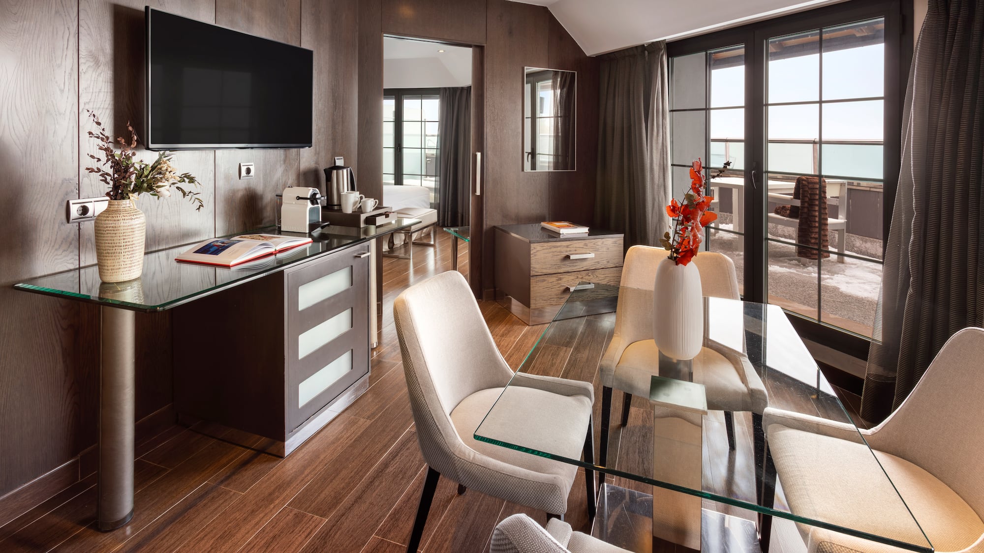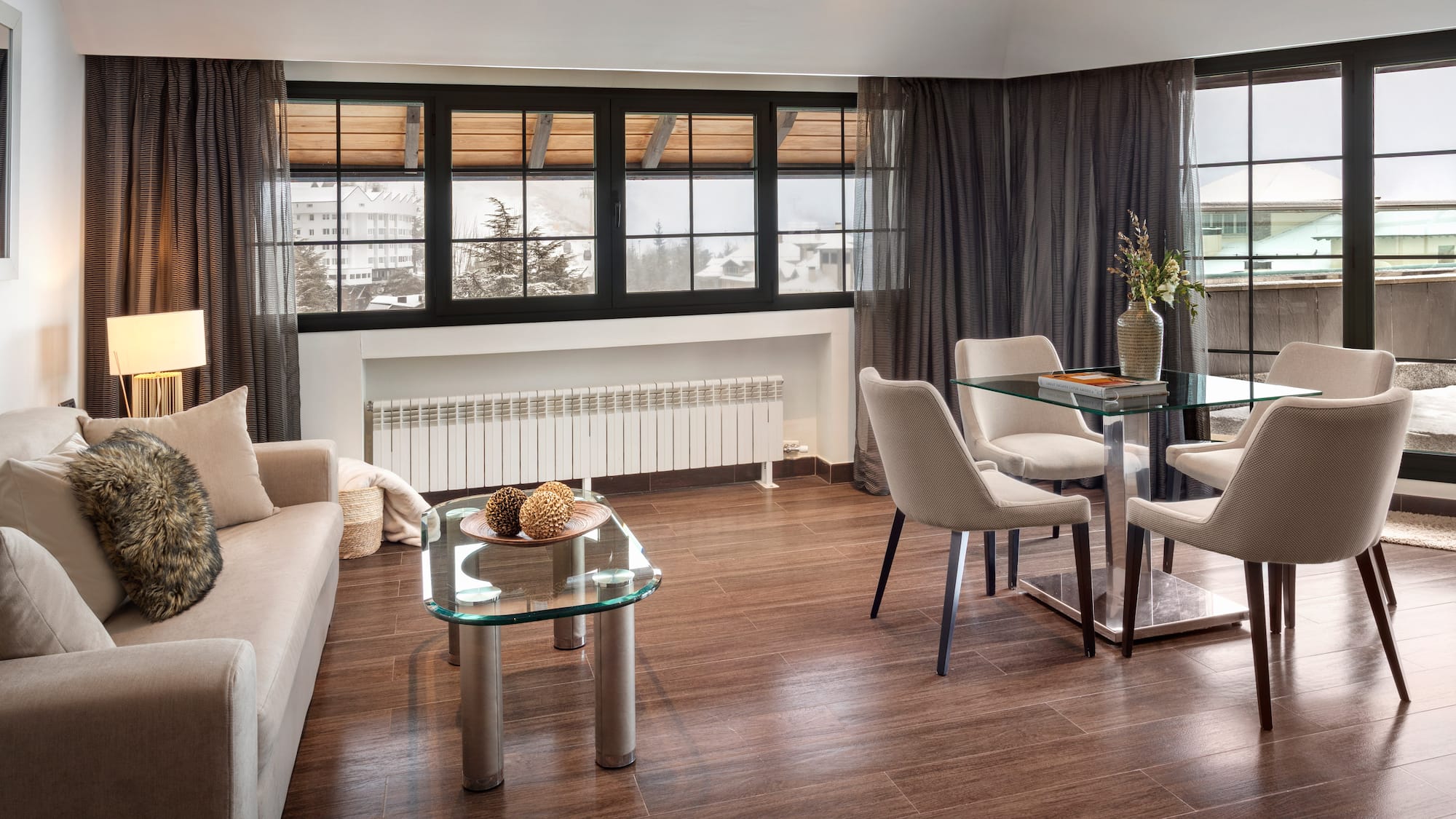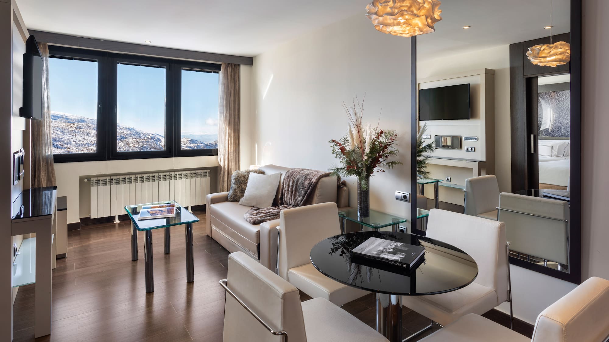 Saboreie o delicioso privilégio de apreciar o sol na Serra Nevada, a partir do terraço privativo desta suite. Concebida para proporcionar uma pausa de inverno perfeita, esta suite é composta por uma zona de estar, quarto de dormir e quarto de vestir.