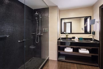 Desfrute de todo o espaço das duas áreas separadas nesta deliciosa suíte de 45 m² com hall, sala de estar com sofá, quarto espaçoso e banheiro com ducha de alta vazão, roupão, chinelos e um conjunto completo de amenities. Também inclui todos os benefícios reservados para os hóspedes do The Level.