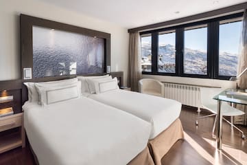 Desfrute de experiências excecionais contemplando a estância da Serra Nevada a partir de um terraço com banheira de hidromassagem, a cereja no topo do bolo para as suas férias de esqui. Este quarto é um refúgio perfeito para alguns dias de esqui em boa companhia.