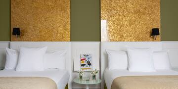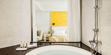 Este quarto, situado entre o 1º e o 5º piso do hotel, tem tudo a ver com elegância e decoração de designer, com vistas interiores ou exteriores (dependendo da disponibilidade). As cores de Sevilha se refletem em um espaço projetado por renomados designers de interiores como Philippe Starck e Marcel Wanders.
