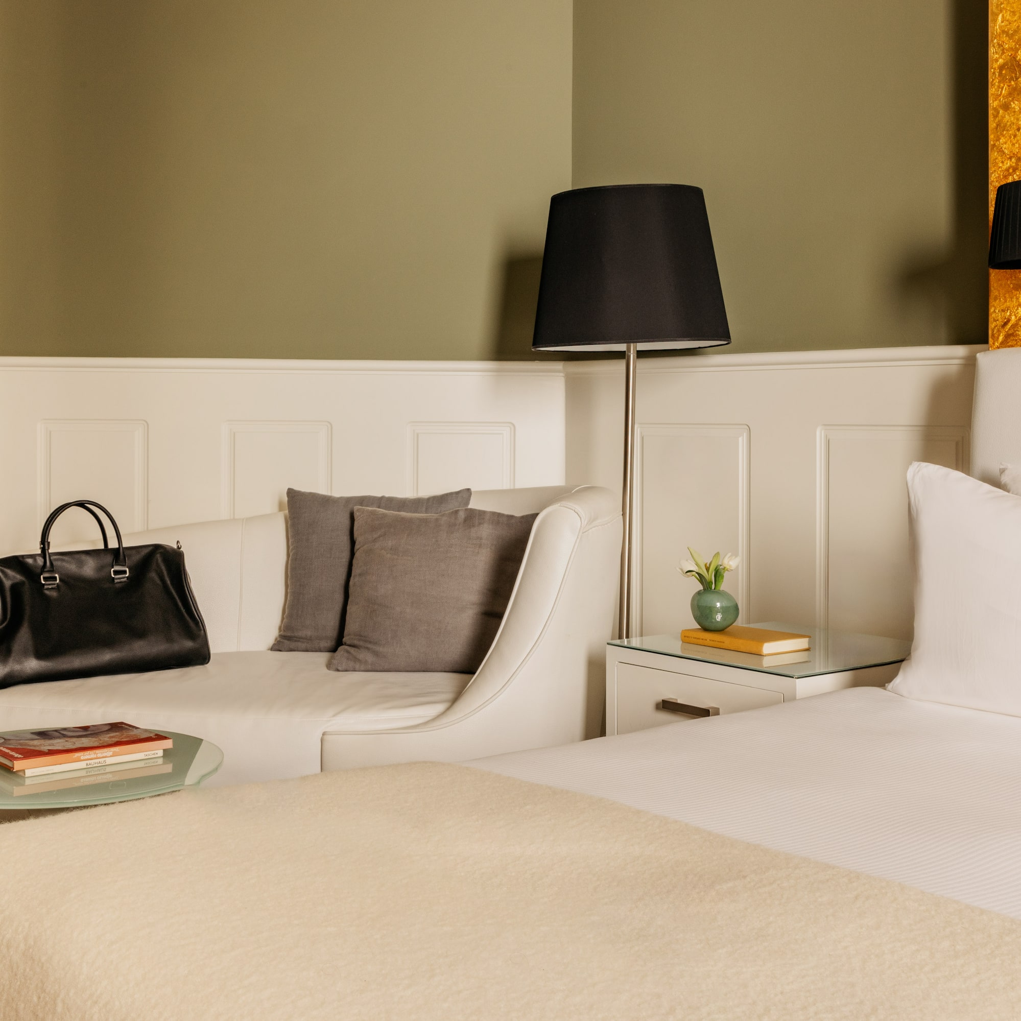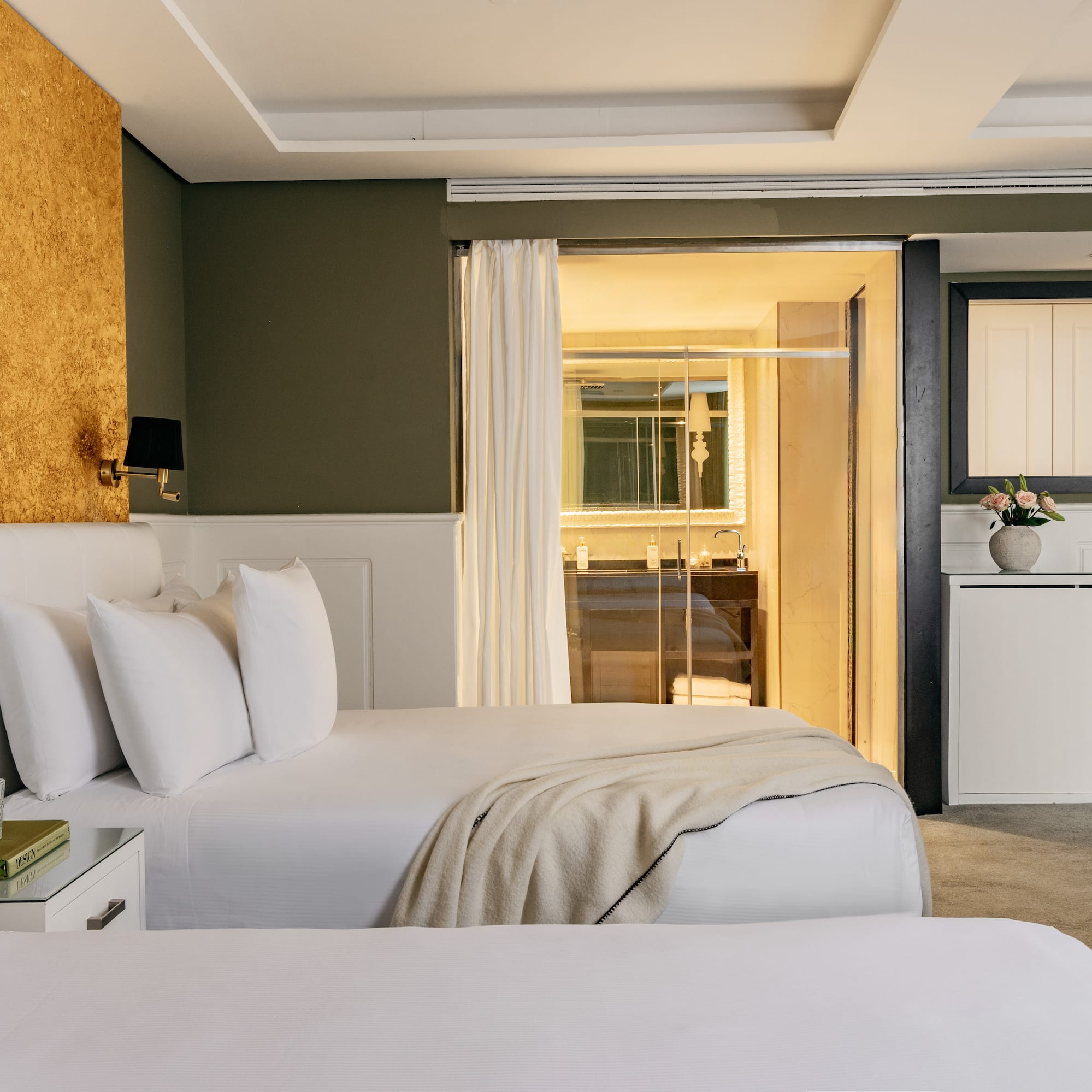 Com espaços confortáveis e acolhedores e tecidos de luxo, este quarto combina na perfeição dois quartos e duas casas de banho e possui toda a tecnologia de ponta e mobiliário feito com materiais de primeira qualidade.