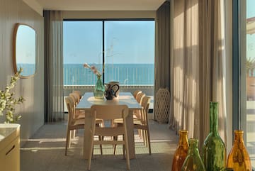 Desfrute das melhores vistas do Mediterrâneo em um quarto que combina design e serenidade. Relaxe na sua banheira ou no seu terraço privado com vista para o mar.