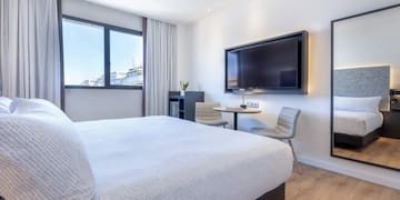 Descobre um quarto que te fará esquecer tudo! Um refúgio elegante e moderno, concebido para oferecer o máximo conforto em Valência. Pronto para te desconectares do mundo e relaxares no INNSiDE Valencia Oceanic? Aqui, cada momento conta!