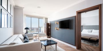 Sinta-se completamente em casa neste quarto tranquilo, espaçoso e confortável, luminoso e com um design moderno. Equipado com duas camas individuais e uma casa de banho com banheira ou chuveiro. Também dispõe de uma TV de 49 polegadas e uma secretária.
