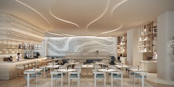 Bebidas exclusivas e petiscos cuidadosamente selecionados acompanham os momentos de estilo. Eleve sua experiência em um oásis refrescante situado acima da cidade, onde a brisa e as vistas deslumbrantes do oceano criam o cenário perfeito.