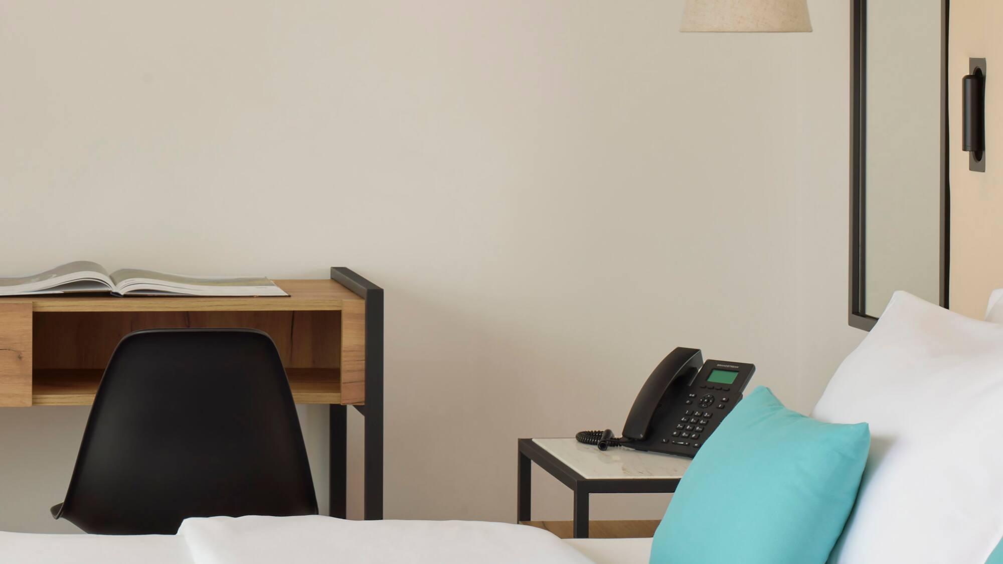 Descoperiți camera noastră cu două dormitoare comunicante și un balcon cu vedere la piscina hotelului. Acesta oferă servicii și facilități moderne plus un sistem de automatizare a locuinței. Bucurați-vă de această perioadă în Durrës.