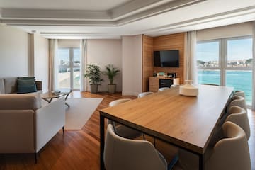 Meliá María Pita a creat un apartament în care fiecare colț a fost conceput pentru a vă invita la deconectare și la distracție pe îndelete. Relaxați-vă într-un salon spațios, cu o canapea, sau mergeți la ultimul etaj pentru a vă trezi cu zgomotul valurilor, în timp ce lumina soarelui inundă camera prin ferestrele mari. Lăsați briza Atlanticului să vă mângâie pielea pe terasă sau reîncărcați-vă bateriile în baia elegantă. Un apartament care nu este doar un loc de cazare, ci este un adevărat refugiu în Golful Orzán.
