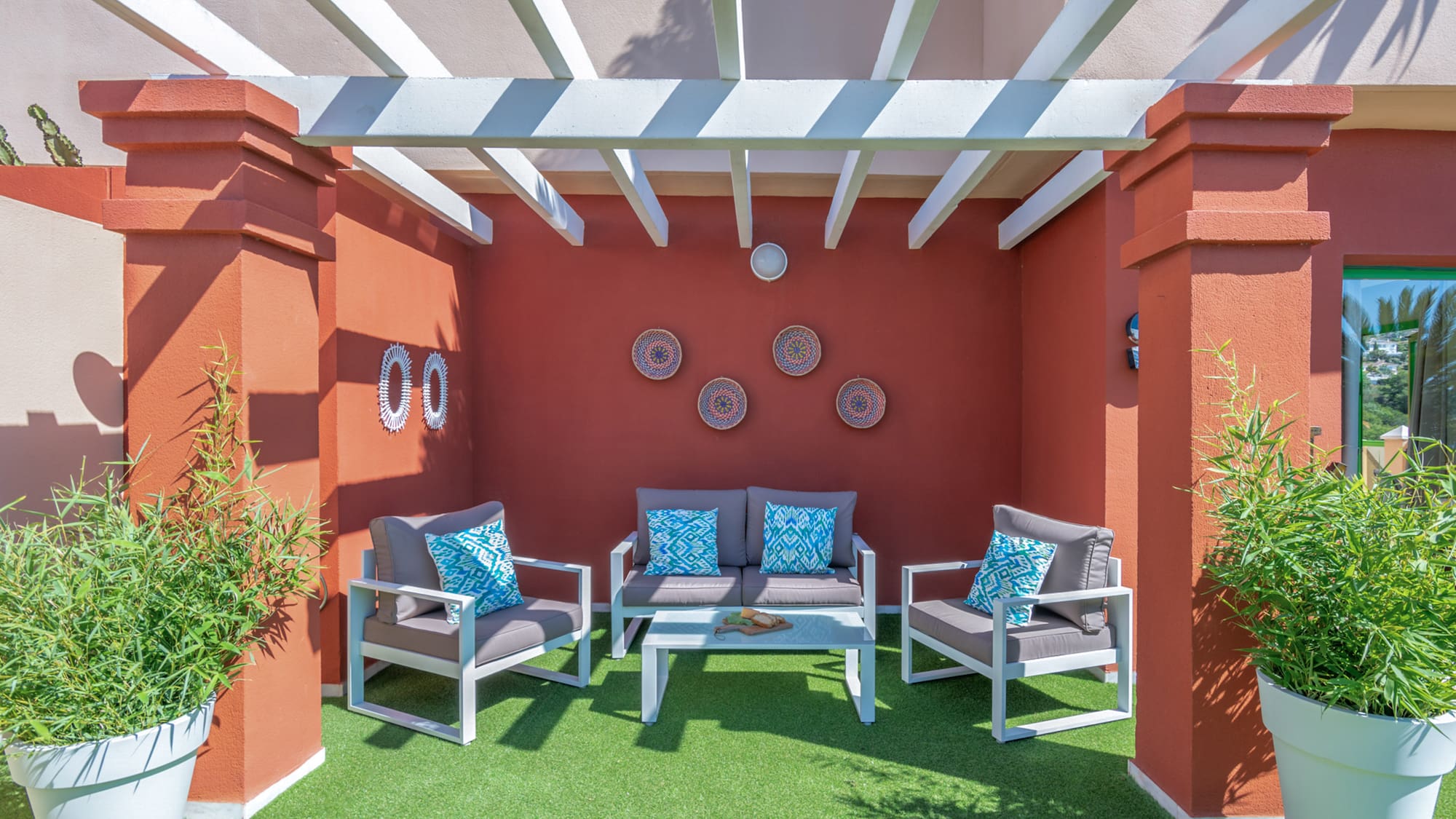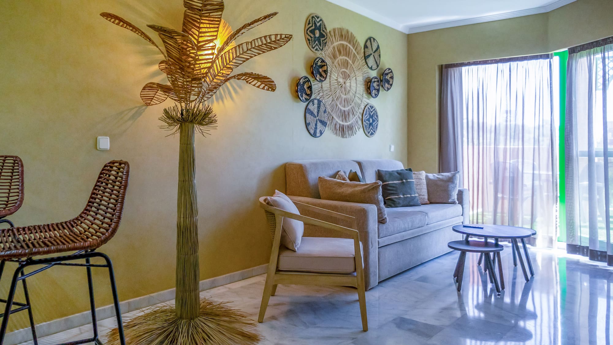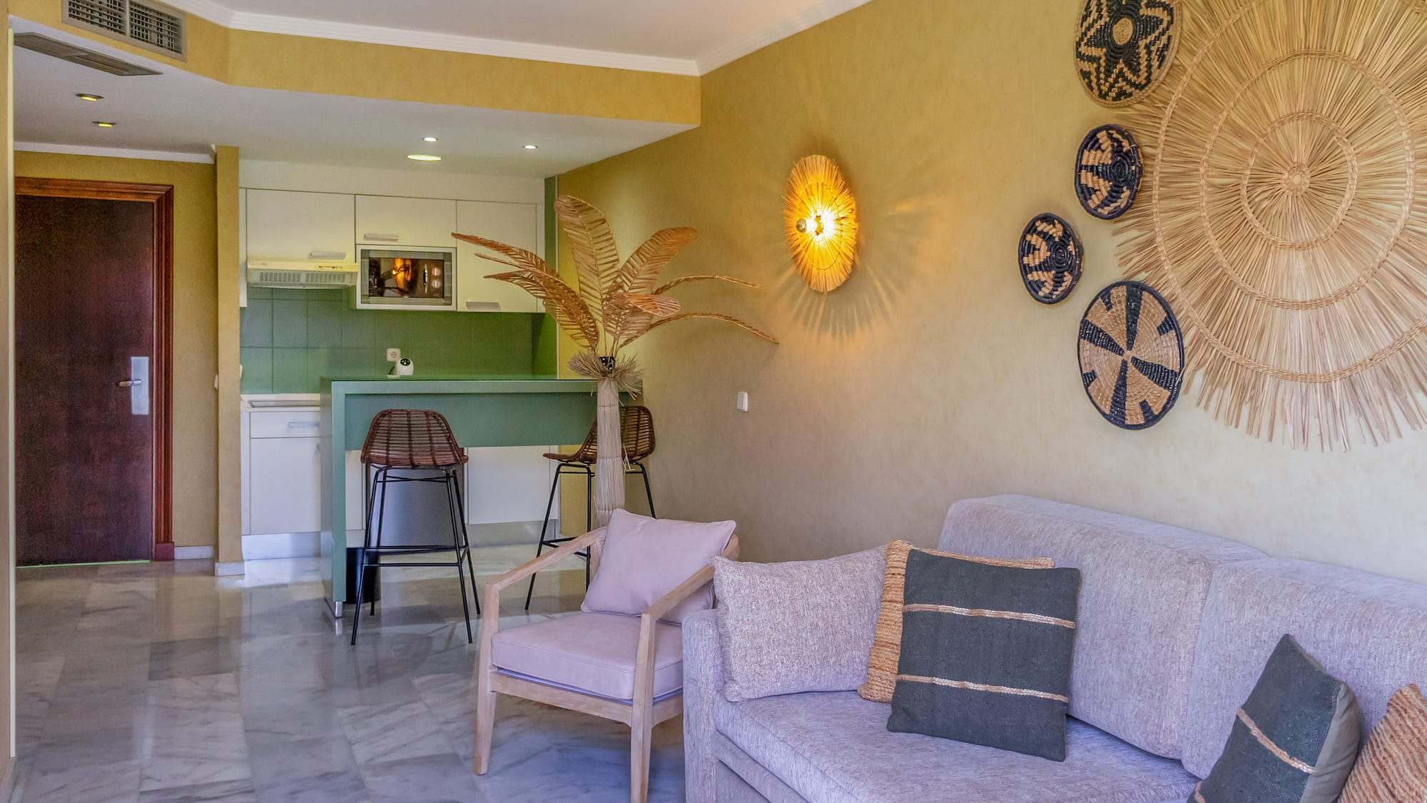 Alegeți acest apartament superior spațios și luminos, cu vedere laterală la Marea Mediterană. Camera oferă un dormitor separat, un lounge cu o canapea extensibilă, o baie completă și o terasă mobilată. Spațiul ideal în care să vă odihniți în confort.