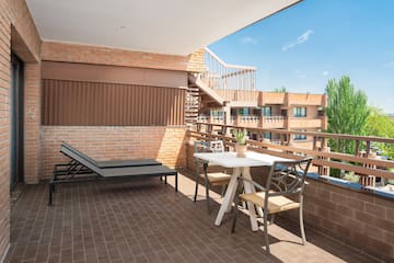 Alegeți o cameră în cartierul Barajas, foarte aproape de aeroportul din Madrid. Izolată fonic și cu terasă, aceasta oferă două paturi de o persoană sau un pat dublu (în funcție de disponibilitate), facilități pentru prepararea de cafea și ceai, printre alte facilități.