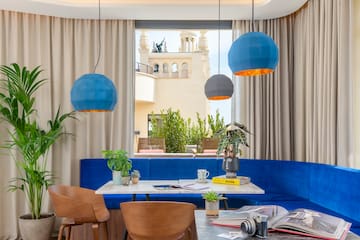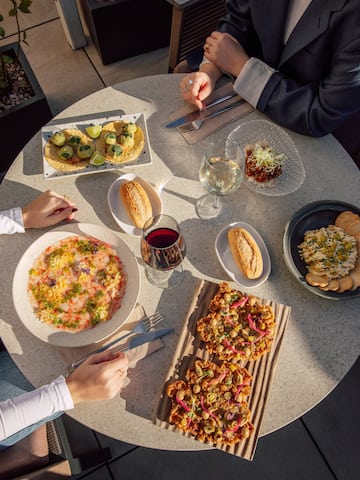 Totul aici vă invită să rămâneți: mese pline cu preparate de împărțit, cocktail-uri care dau tonul serii și o atmosferă unică pentru a pregăti toasturi, a discuta cu prietenii și a lăsa Madridul să se ocupe de restul. Veniți la bordul acestei experiențe portuare și admirați cele mai frumoase priveliști ale Gran Vía. Așezați-vă confortabil și bucurați-vă de un loc în care fiecare întâlnire are gustul unui plan grozav. Cantina noastră este un paradis liniștit în care fiecare călător se poate lăsa liber.