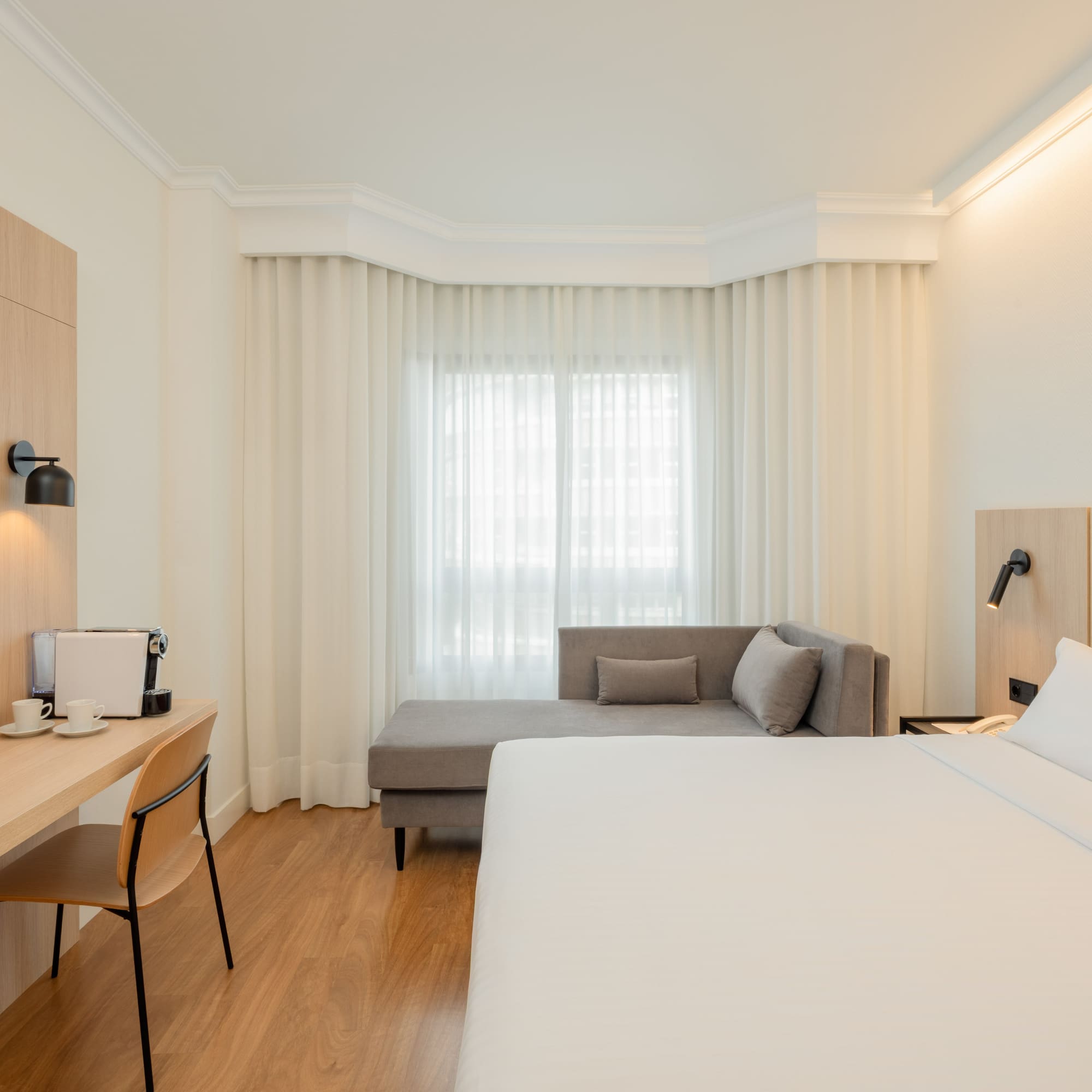 Cameră modernă și sofisticată pentru cei mai pretențioși călători care doresc o doză suplimentară de lux. Ideal dacă călătoriți în Vigo în scop de afaceri. Camera are un pat king-size, un lounge, un birou, un filtru de cafea cu capsule pentru a pregăti cafea și ceaiul, un minibar și un seif.
