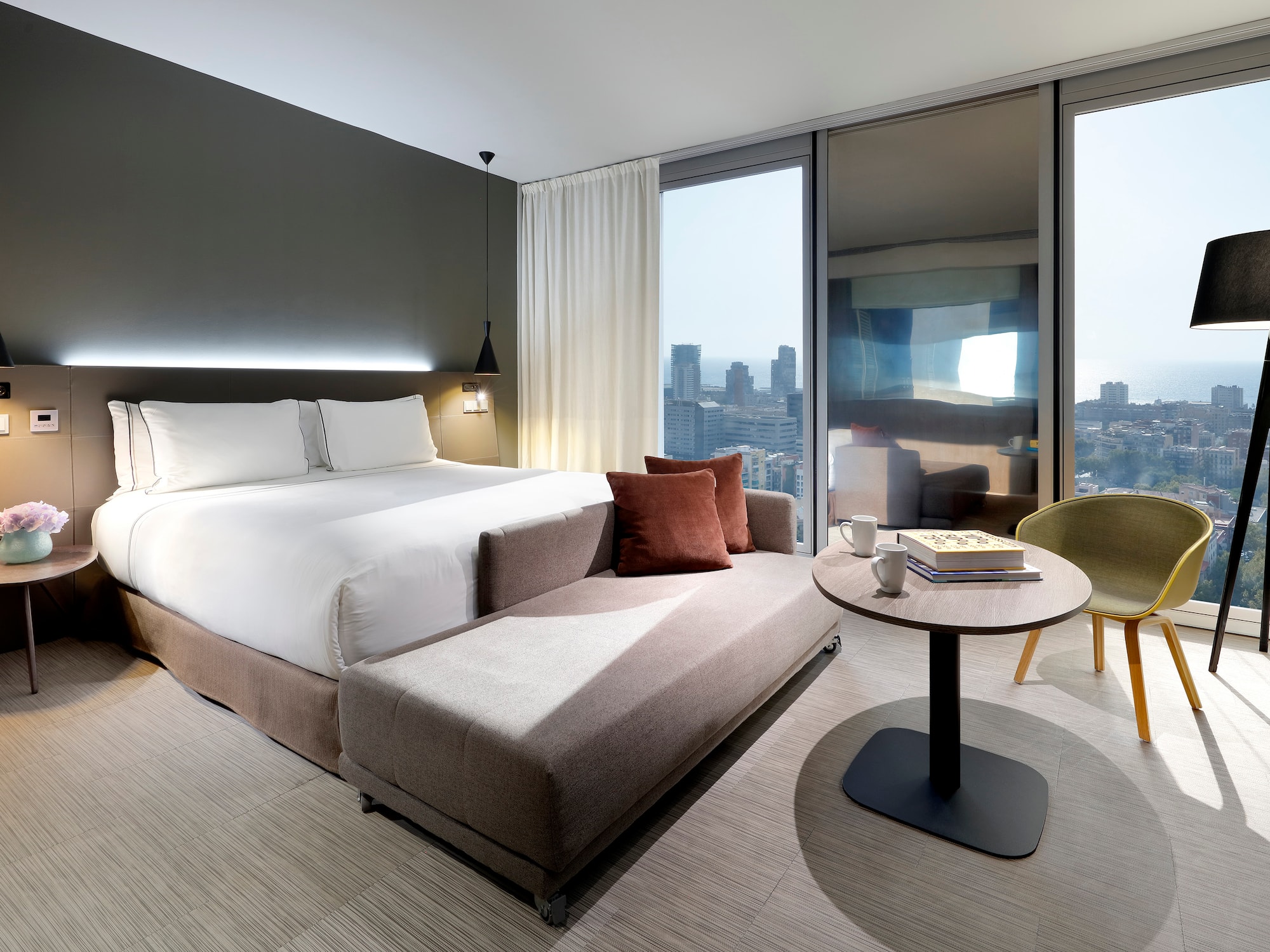 Meliá Barcelona Sky is a modern hotel with views that catch the eye. The hotel is located near the Agbar Tower and the Olympic Port, ideal for travelers seeking both the city and the luxury.