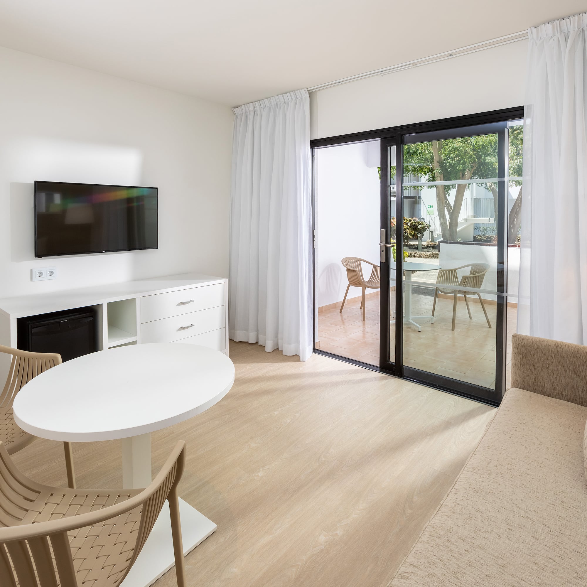 Unforgettable holidays await you in this comfortable room. A separate lounge with a sofa-bed, a bedroom, a bathroom with a bathtub, and direct access to a large furnished balcony. Enjoy your stay in Fuerteventura with the Tribe.