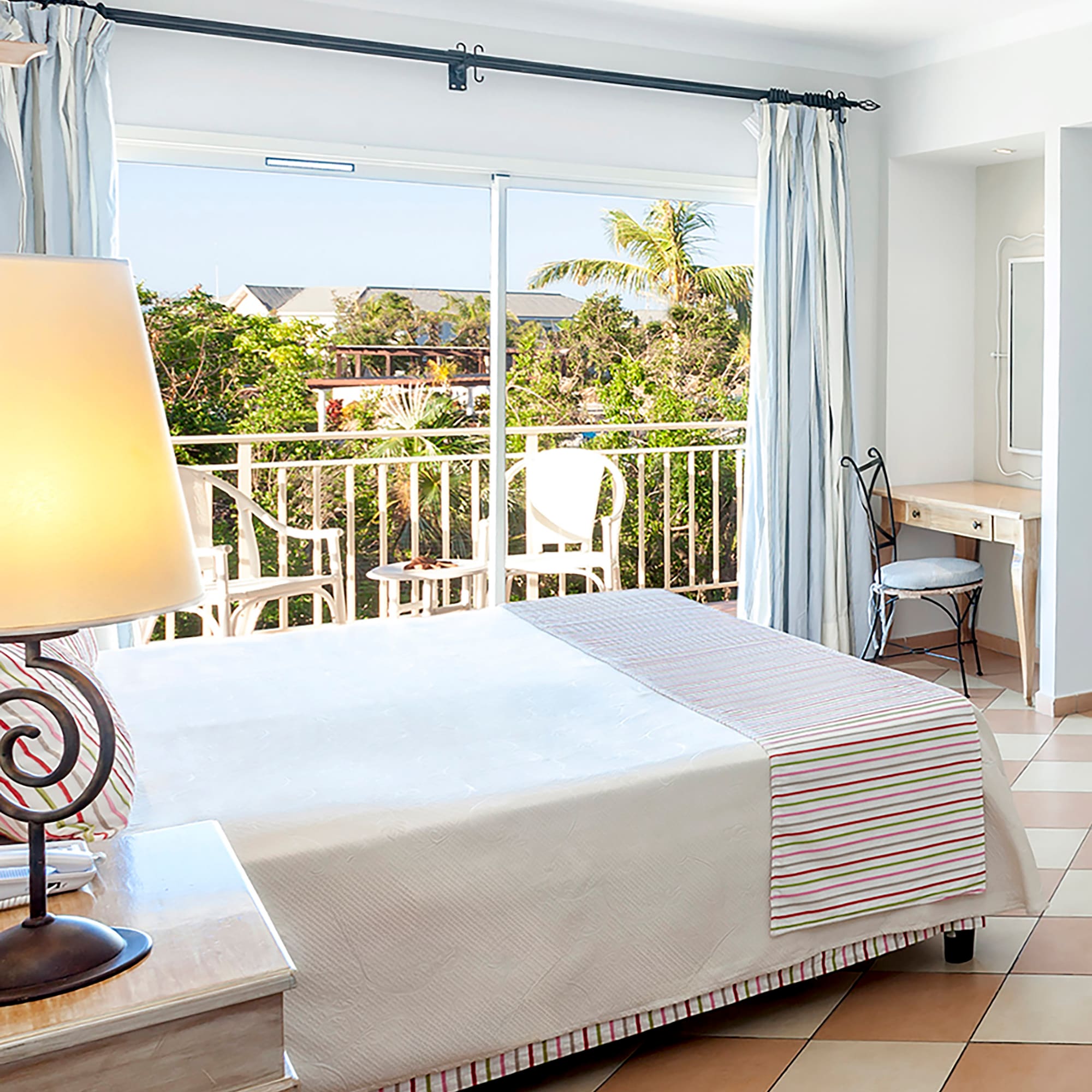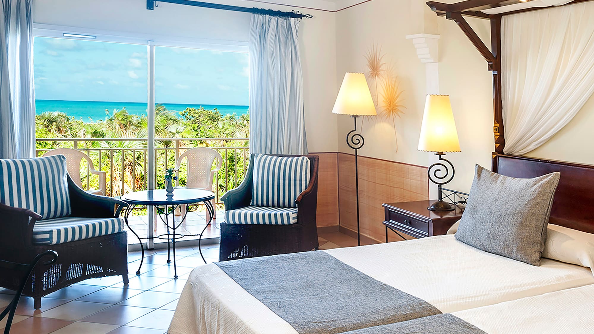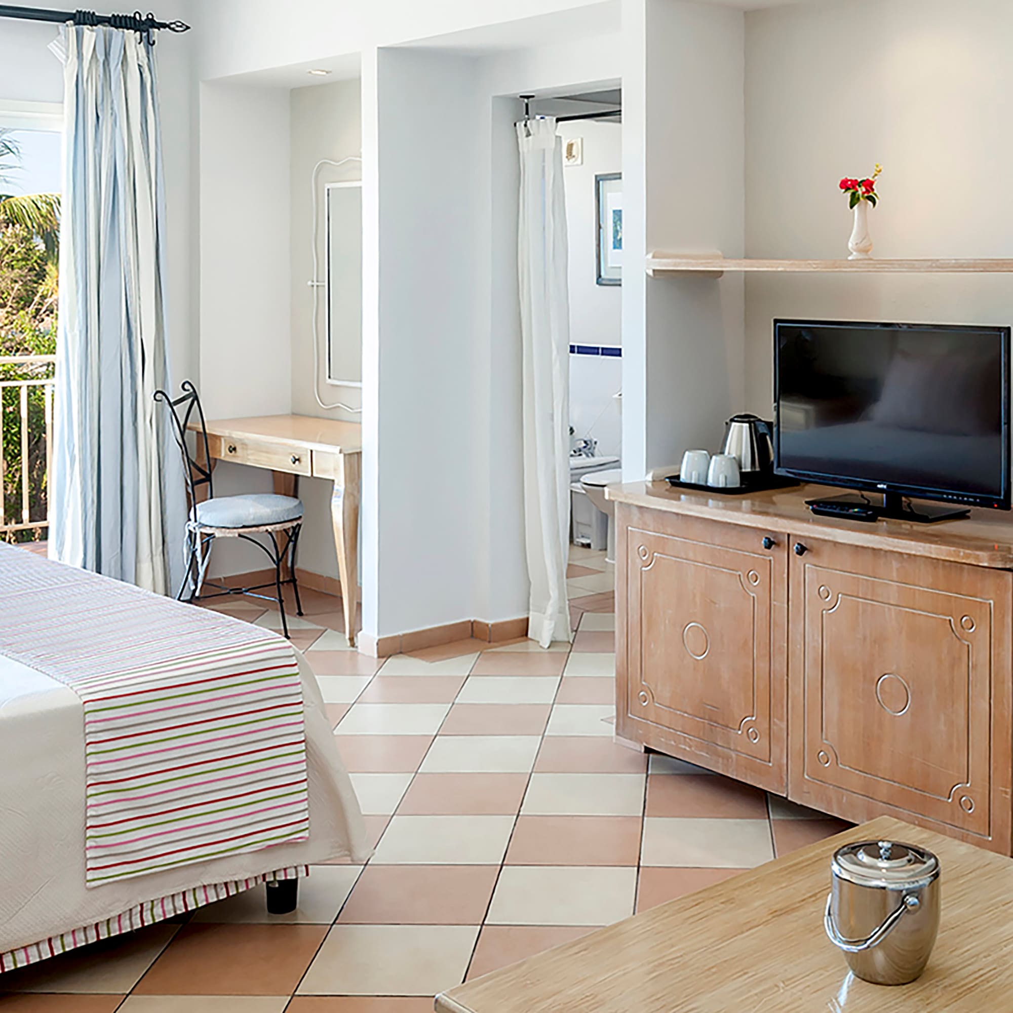 Phòng có sảnh với tủ quần áo, phòng ngủ, phòng tắm với bồn tắm / vòi sen và ban công hoặc sân hiên. Ngoài ra còn có giường cỡ King và các tiện nghi bao gồm truyền hình vệ tinh, máy sấy tóc, áo choàng tắm, khăn tắm biển, két an toàn và minibar với nước ngọt cùng bia.