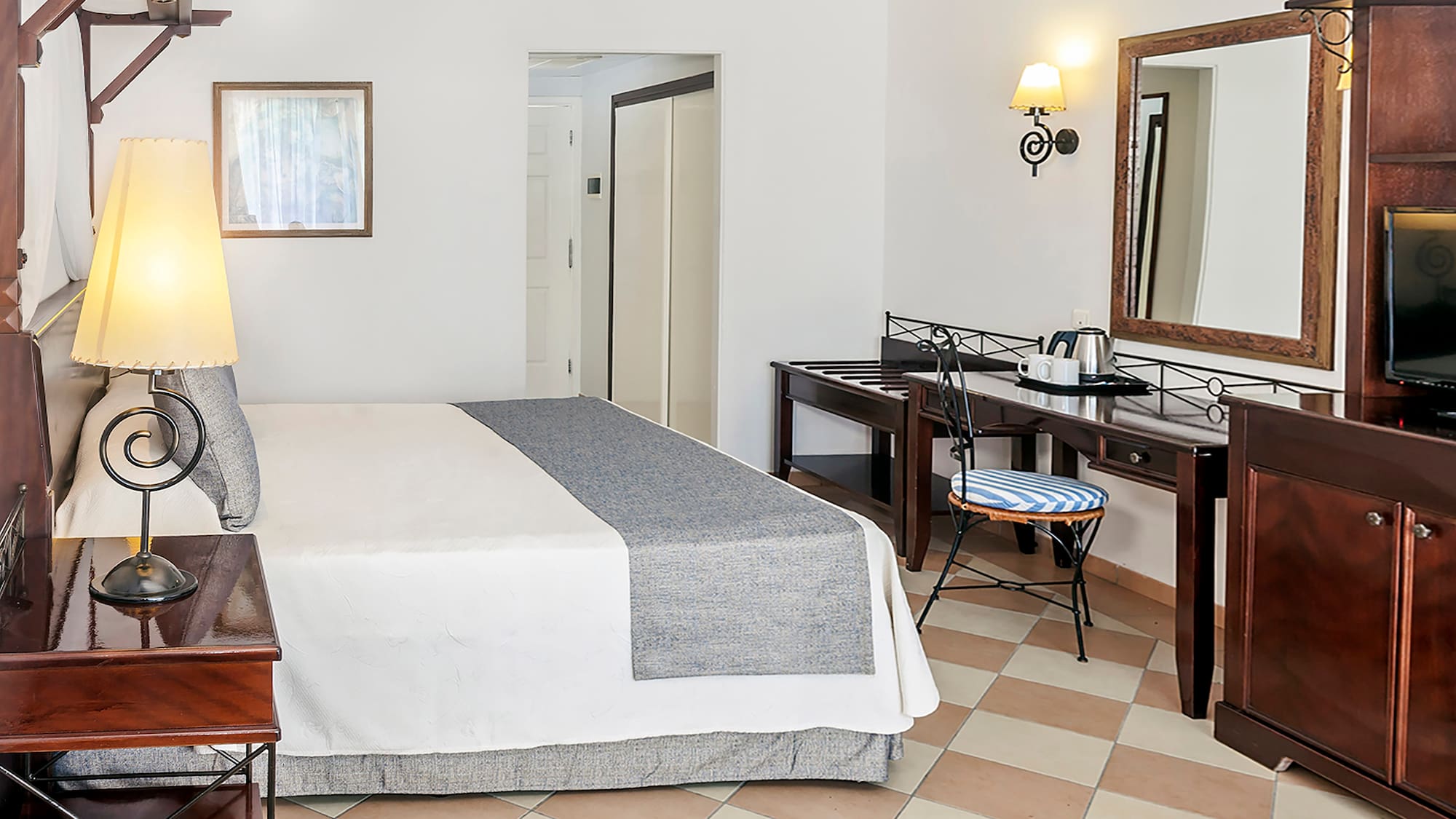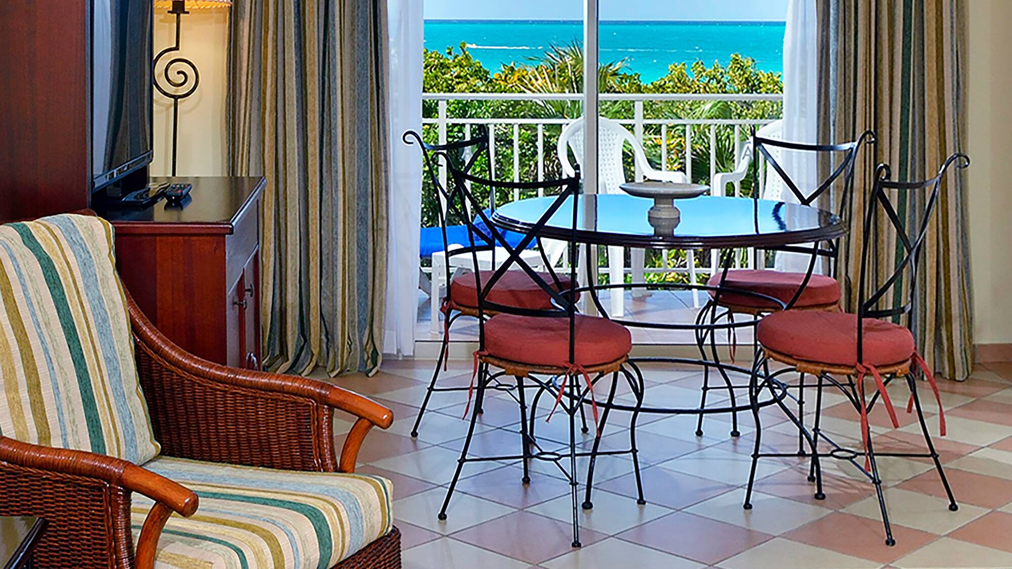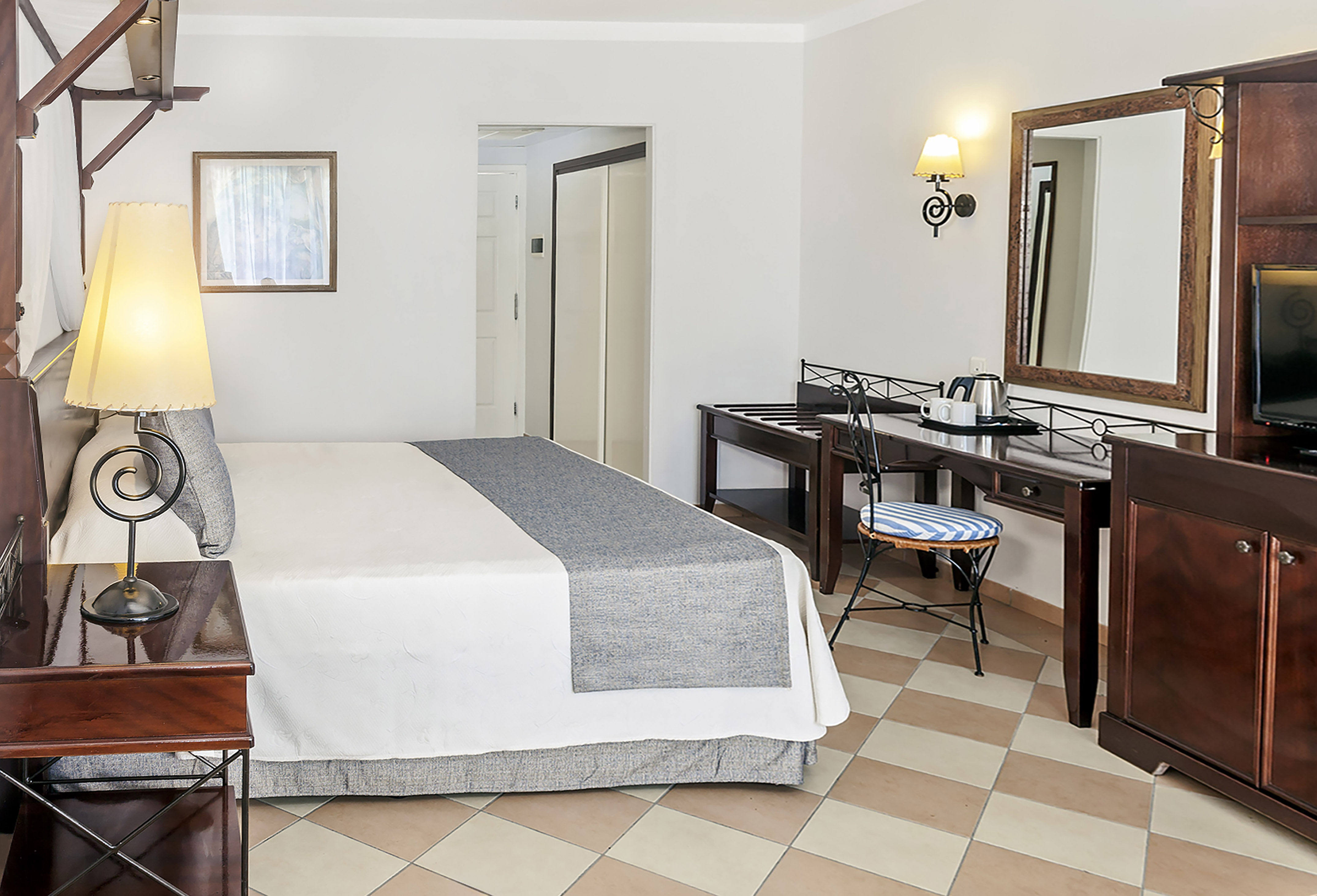 Phòng có sảnh với tủ quần áo, phòng ngủ, phòng tắm với bồn tắm / vòi sen và ban công hoặc sân hiên. Ngoài ra còn có giường cỡ King và các tiện nghi bao gồm truyền hình vệ tinh, máy sấy tóc, áo choàng tắm, khăn tắm biển, két an toàn và minibar với nước ngọt cùng bia.