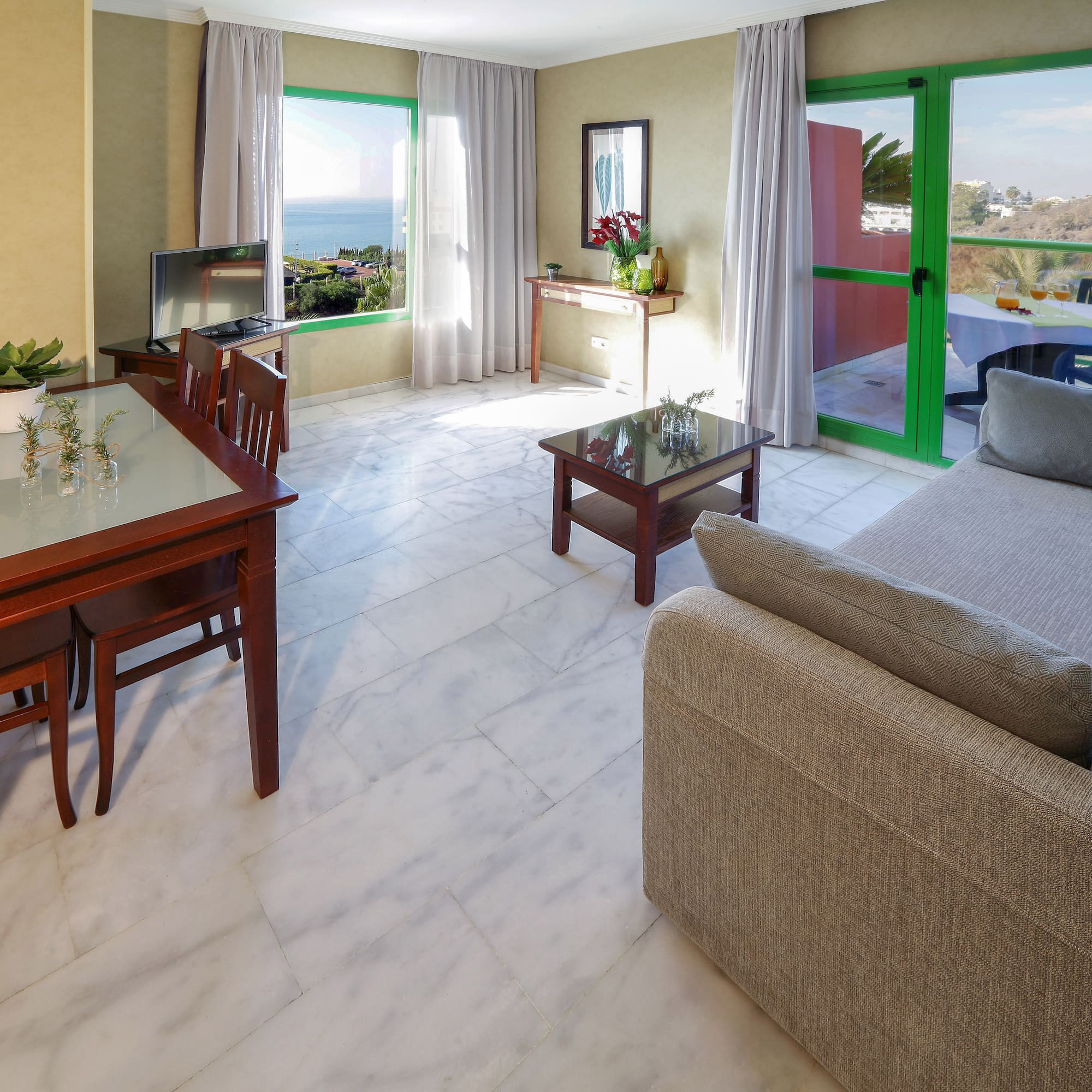 Hãy chọn suite superior rộng rãi và sáng sủa này có tầm nhìn ra một phía Biển Địa Trung Hải. Căn hộ có phòng ngủ riêng biệt, sảnh khách với giường sofa, phòng tắm đầy đủ tiện nghi và sân hiên được trang bị bàn ghế. Không gian lý tưởng để nghỉ ngơi thoải mái.