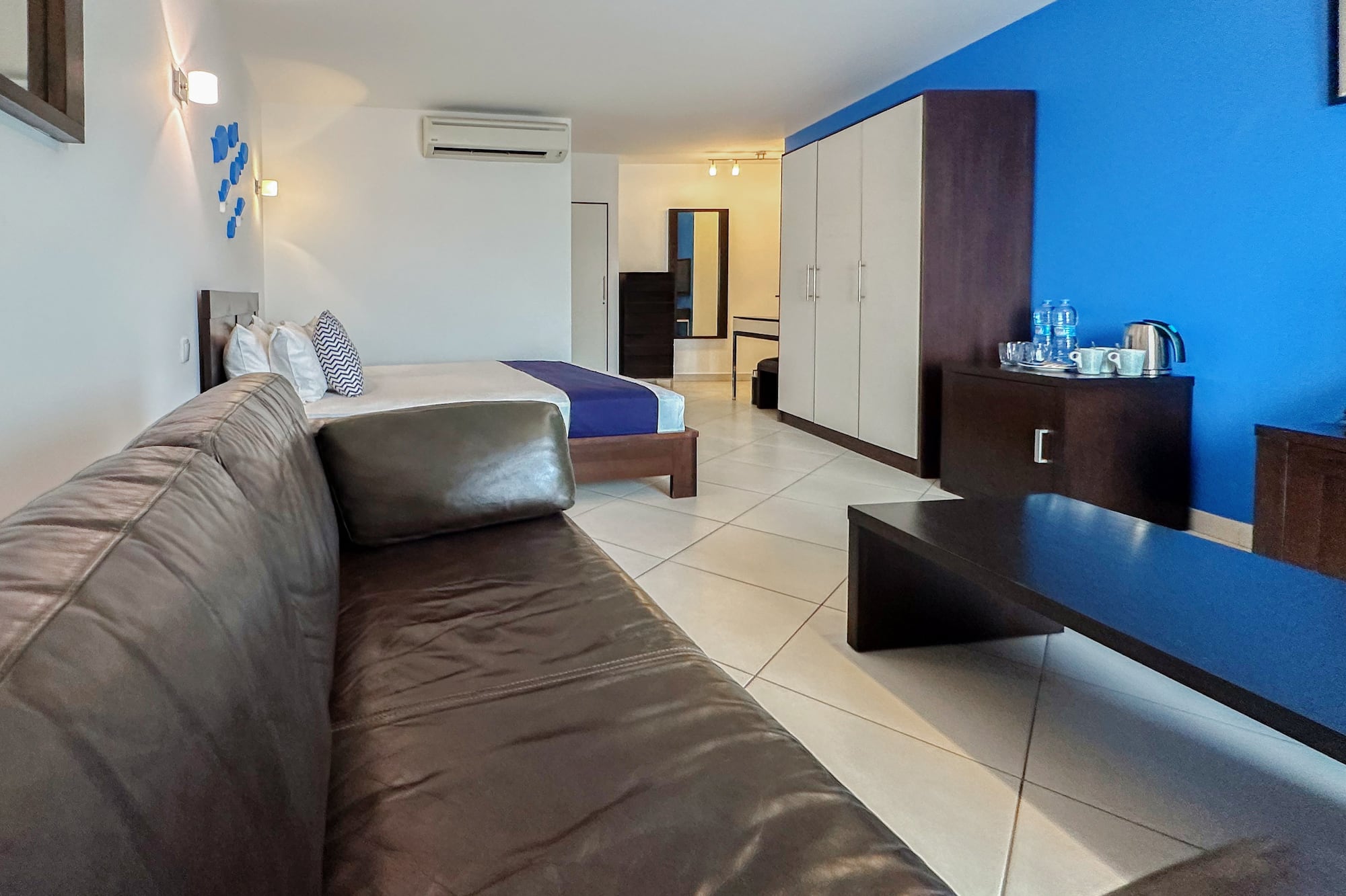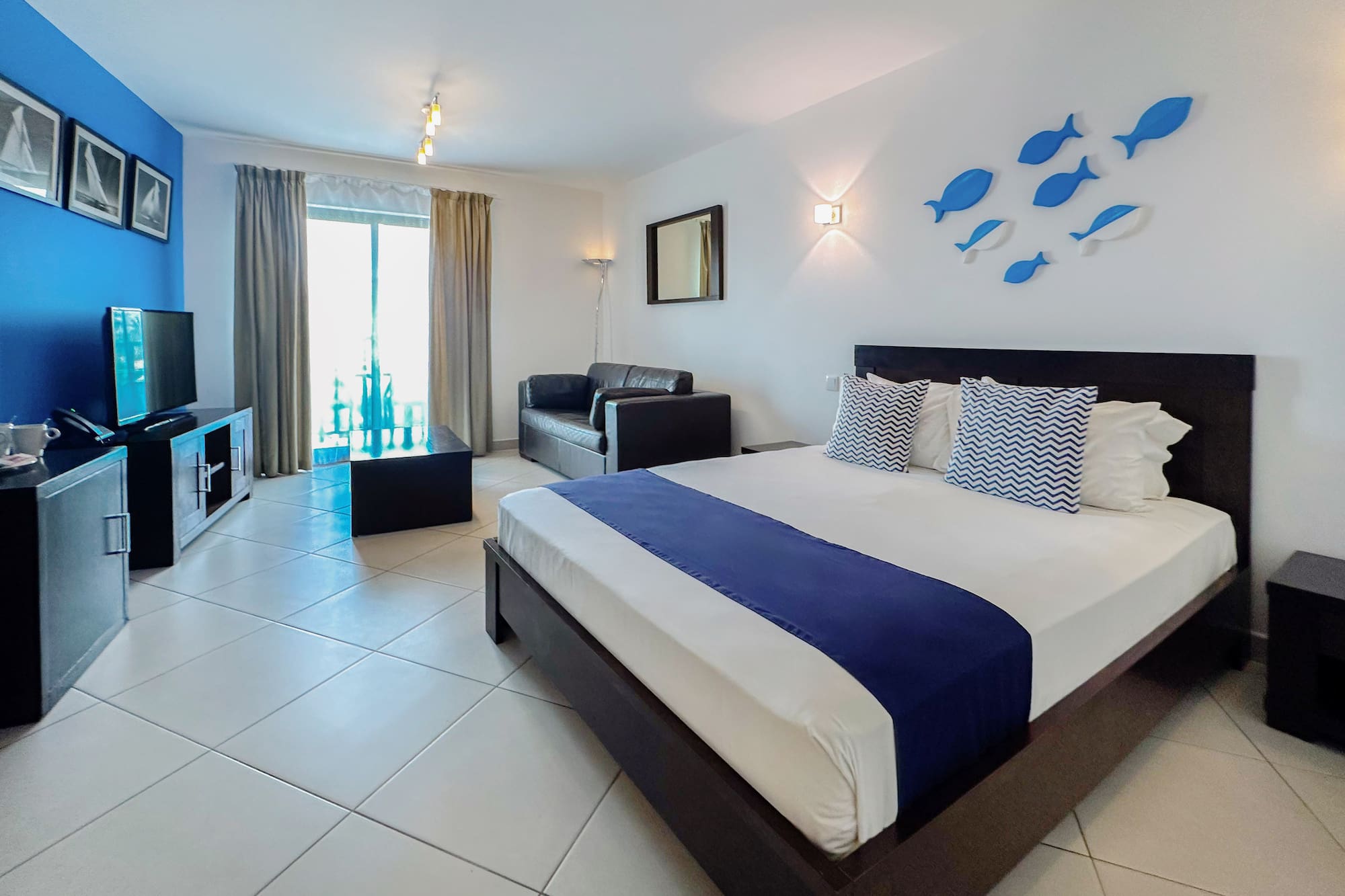 Your refuge in Isla de Sal begins here: with a modern design that combines freshness and comfort, a double bed that invites you to rest, air-conditioning to accompany you at any time and a 42-inch TV for taking a break.
