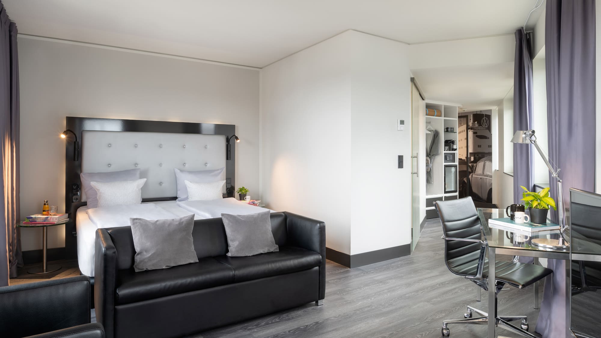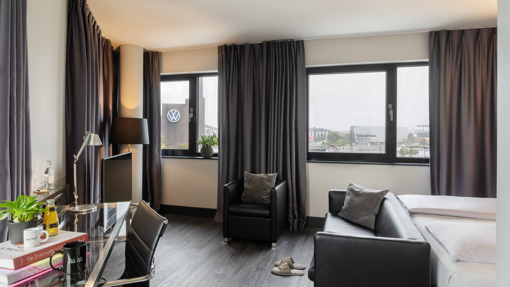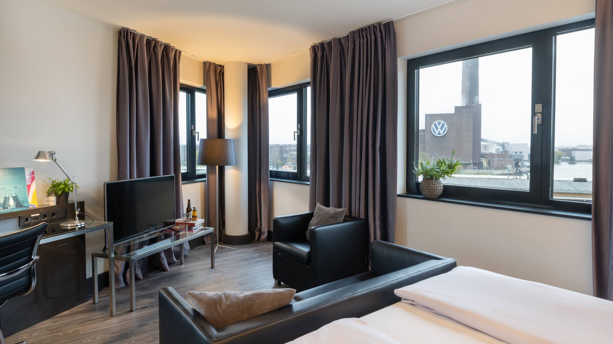 在这里,您可以欣赏到令人难以置信的 Autostadt 美景,体验与众不同的工作方式。加长床、书桌、花洒或浴缸,让您享受尊贵的住宿体验。客房设施齐全,配有高速 Wi-Fi、电视和 Nespresso 咖啡机。
